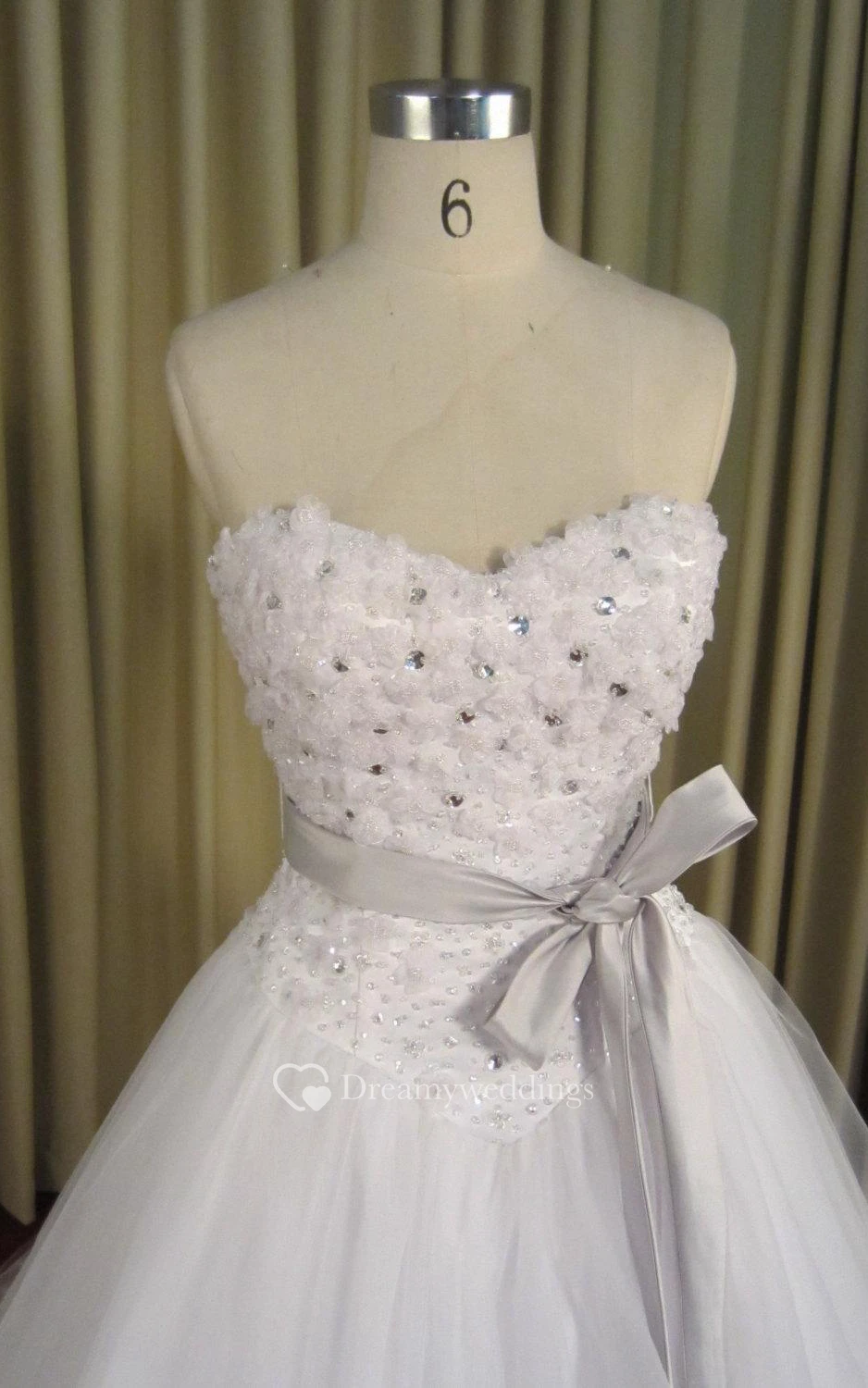 Tulle A-Line Sweetheart Ball Gown With Crystal Detailing and Bow Sash