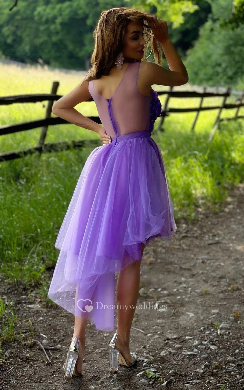 Tulle A Line Zipper Illusion Sleeveless with Appliques and Beading Homecoming Dress
