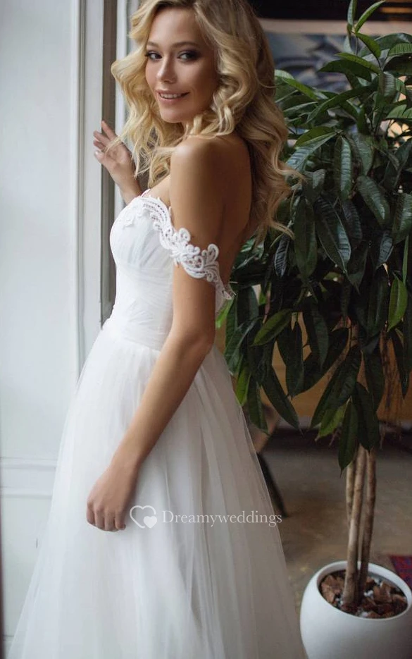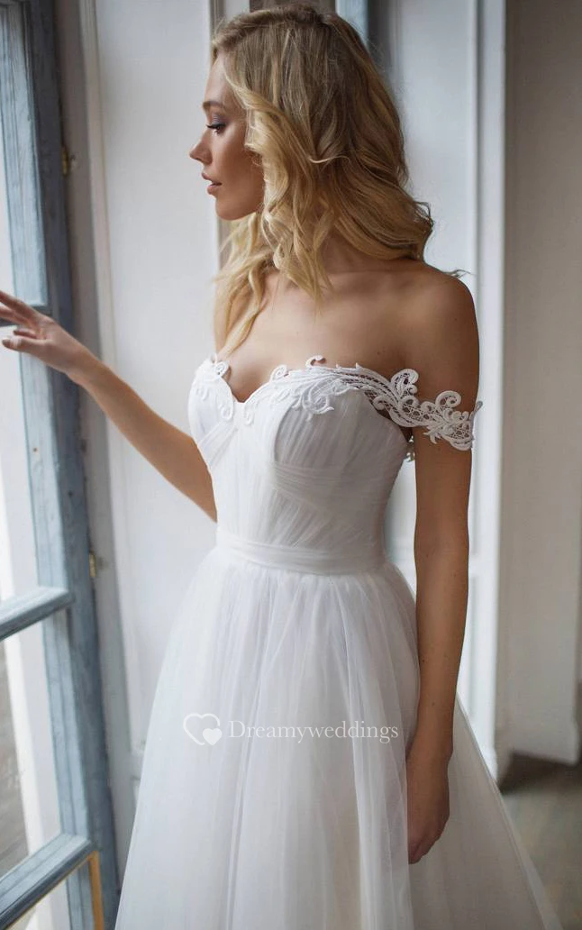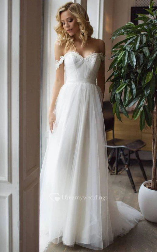 Tulle Floor-length Court Train A Line Sleeveless Romantic Wedding Dress with Lace