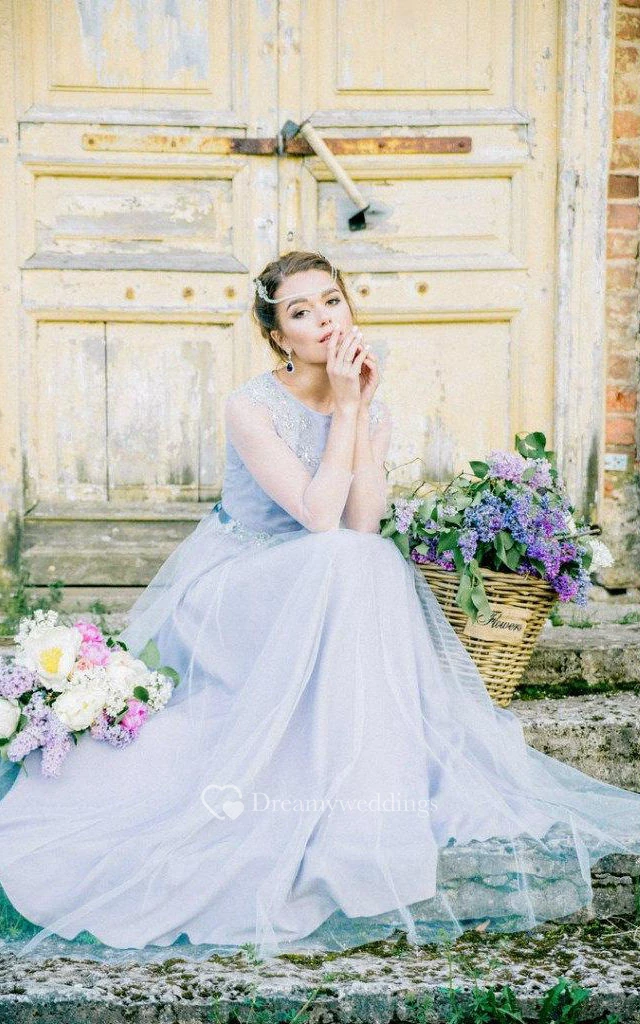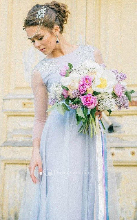 Tulle Floor-Length Dress With Illusion Long Sleeve