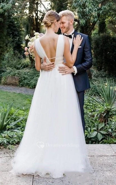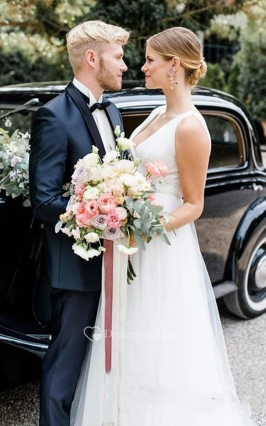 Tulle Floor-length Sweep Train A Line Sleeveless Romantic Wedding Dress