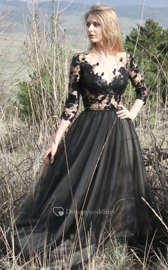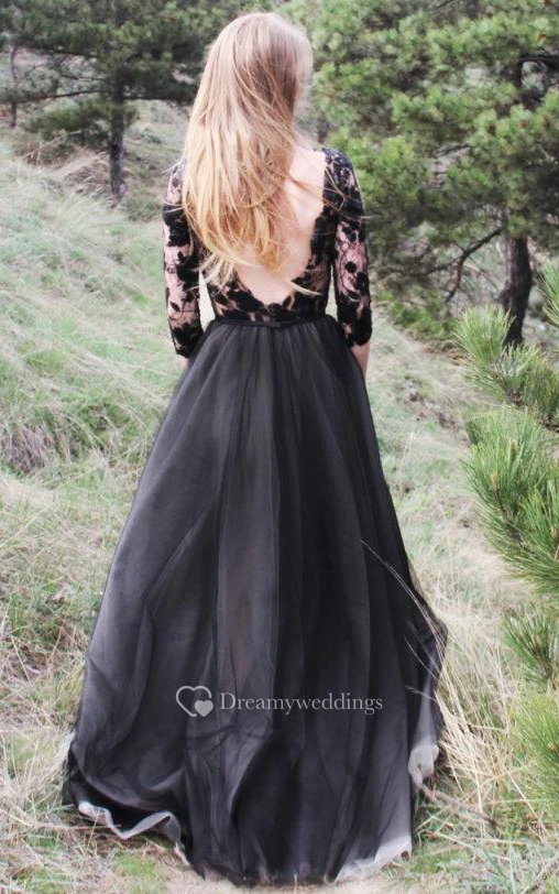 Tulle Long Sleeve Illusion Dress With Appliques And Deep-V Back