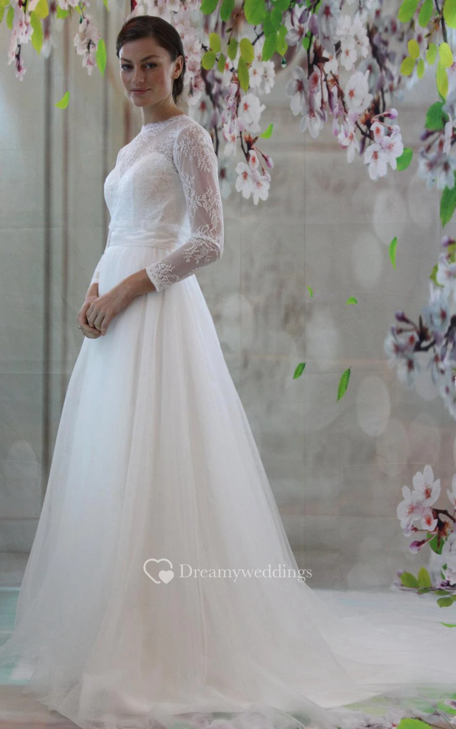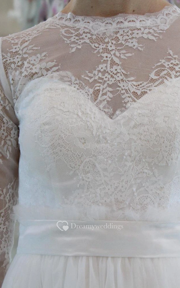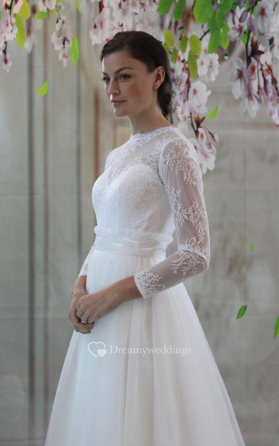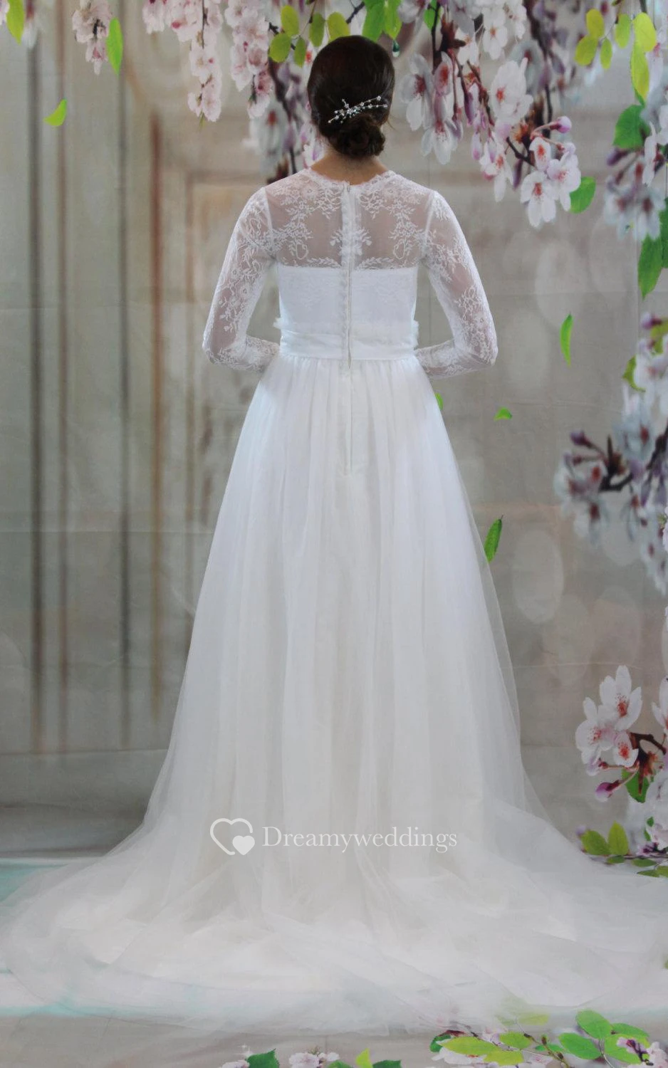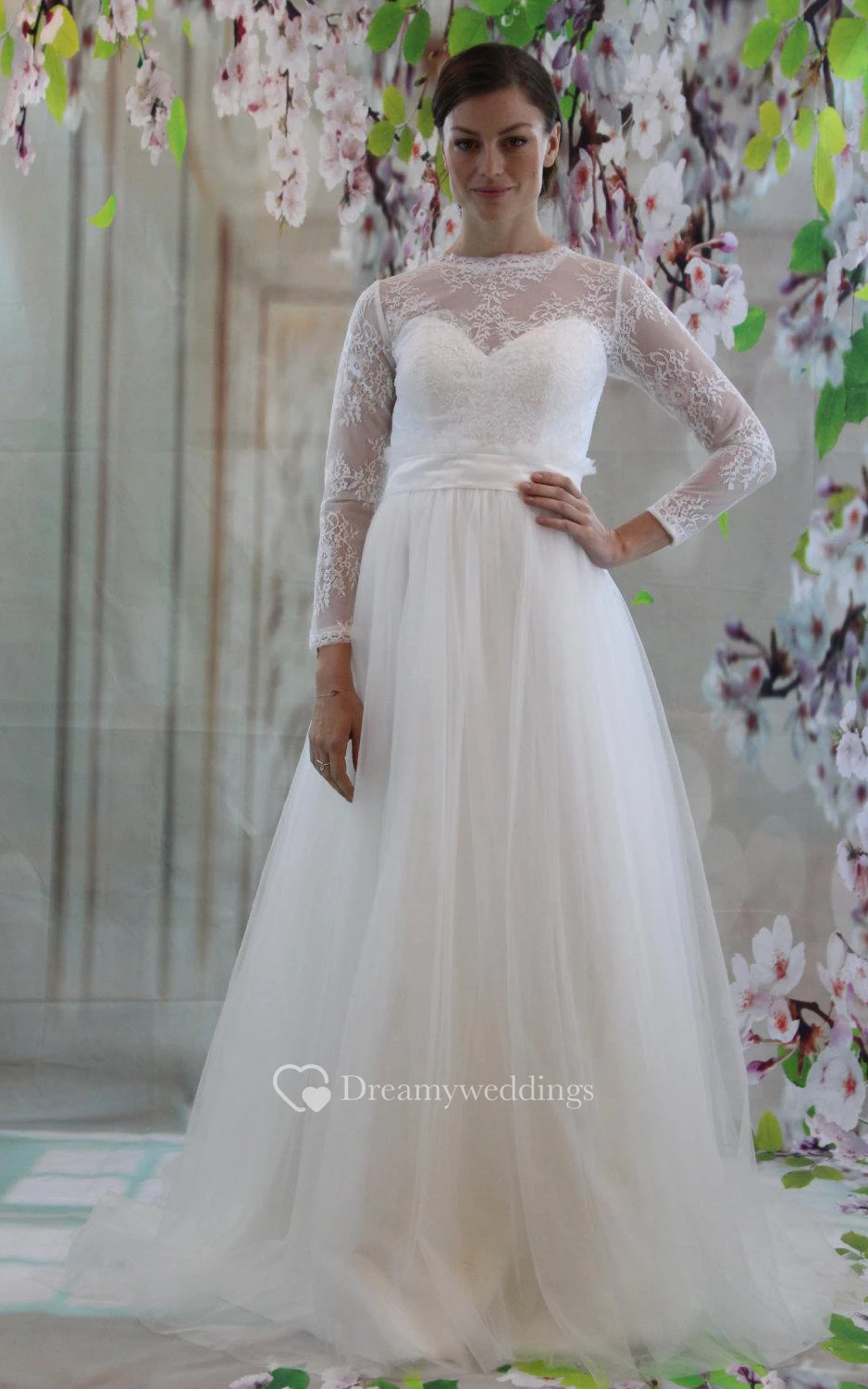 Tulle Long Sleeve Lace Bodice Dress With High Neck