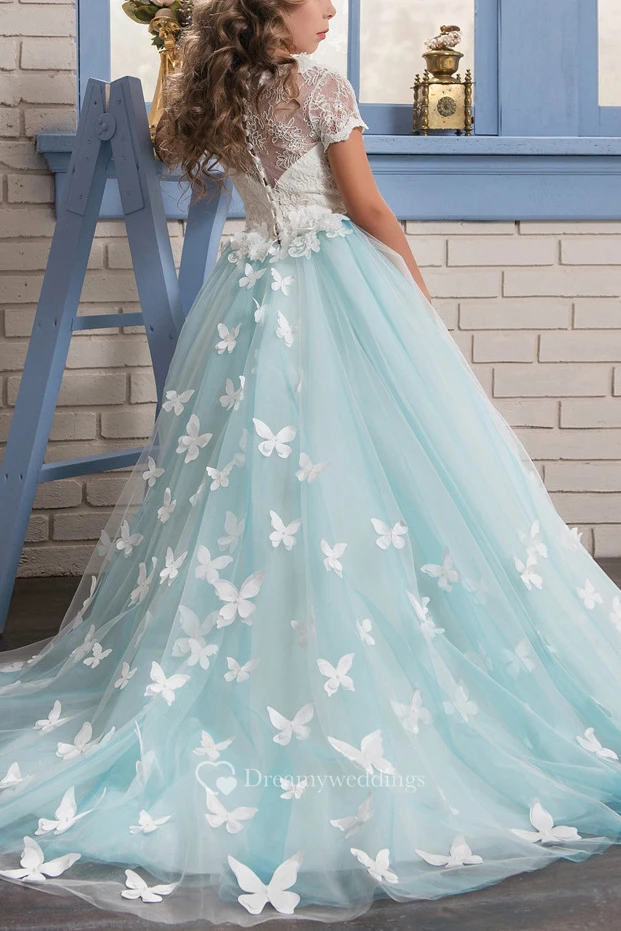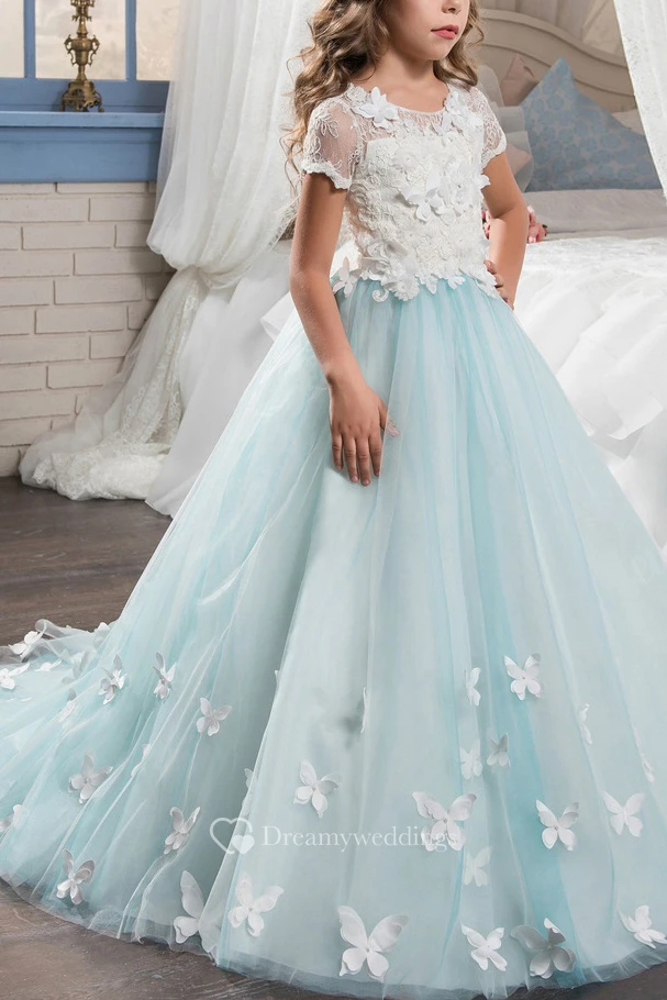 Tulle Scoop Ball Gown Flower Girl Dress with Lace and Applique