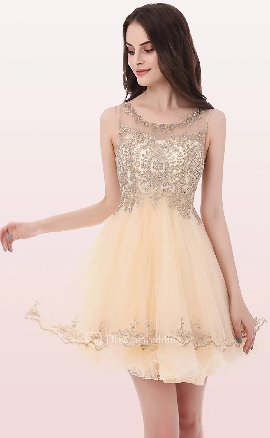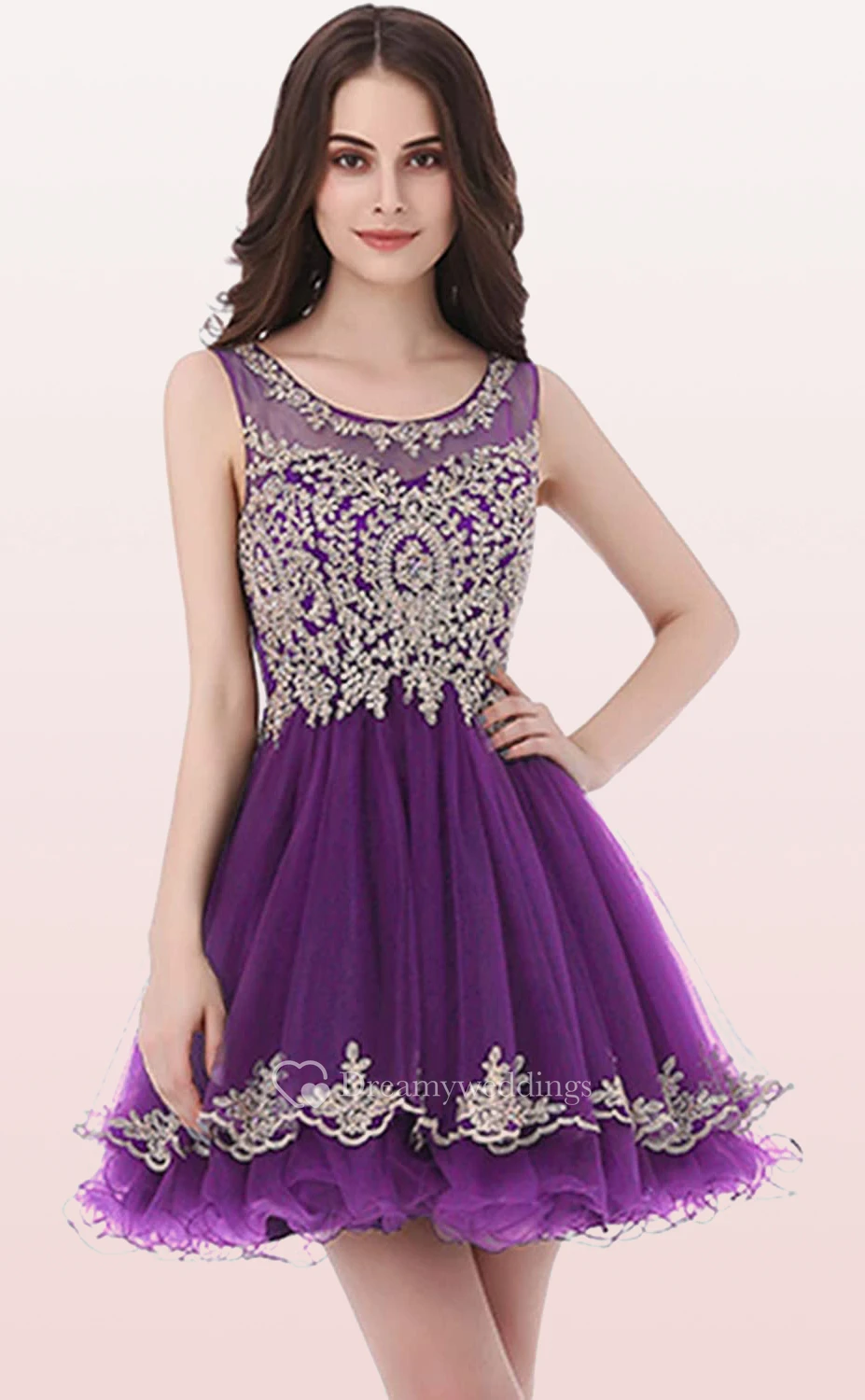 Tulle Short A Line Sleeveless Casual Homecoming Dress with Beading