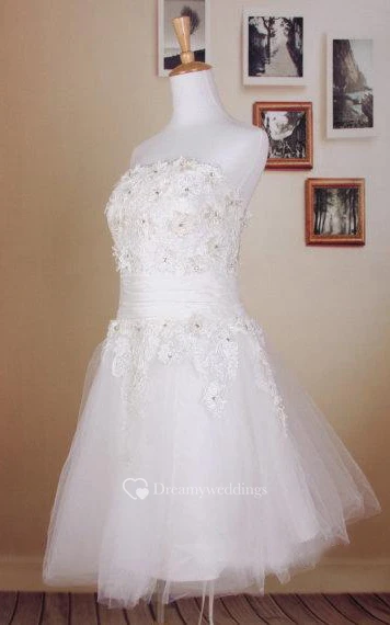 Tulle Short A-Line Sleeveless Dress With Lace Appliques and Beadings