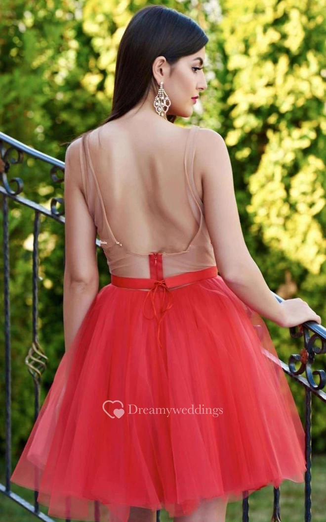 Tulle Short A Line Sleeveless Romantic Homecoming Dress with Sash