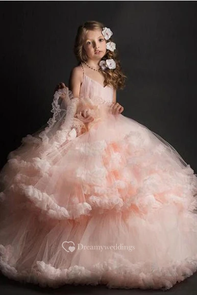 Tulle Spaghetti Ball Gown Flower Dirl Dress with Tier