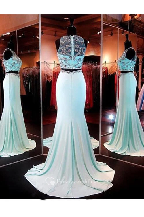 Two Piece Jersey Jewel Sleeveless Zipper Illusion Dress