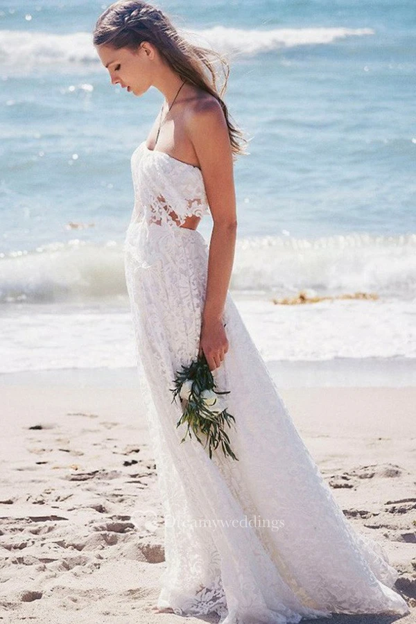 Two Piece Strapless Floor-length Lace Beach Boho Wedding Dress Wedding Dresses
