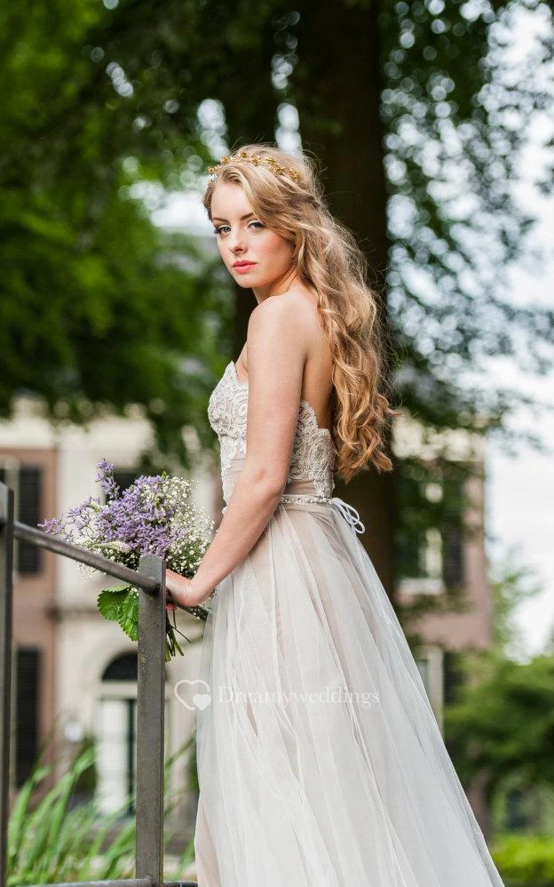 Two Piece Tulle Skirt Lace Nude Destination Beach Bohemian Dress