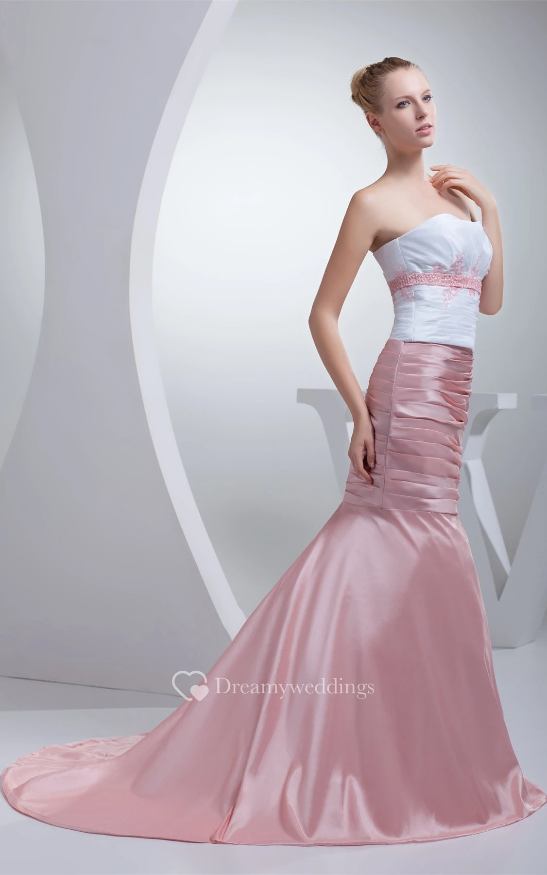 Two-Tone Column Sleeveless Appliques and Dress With Ruching