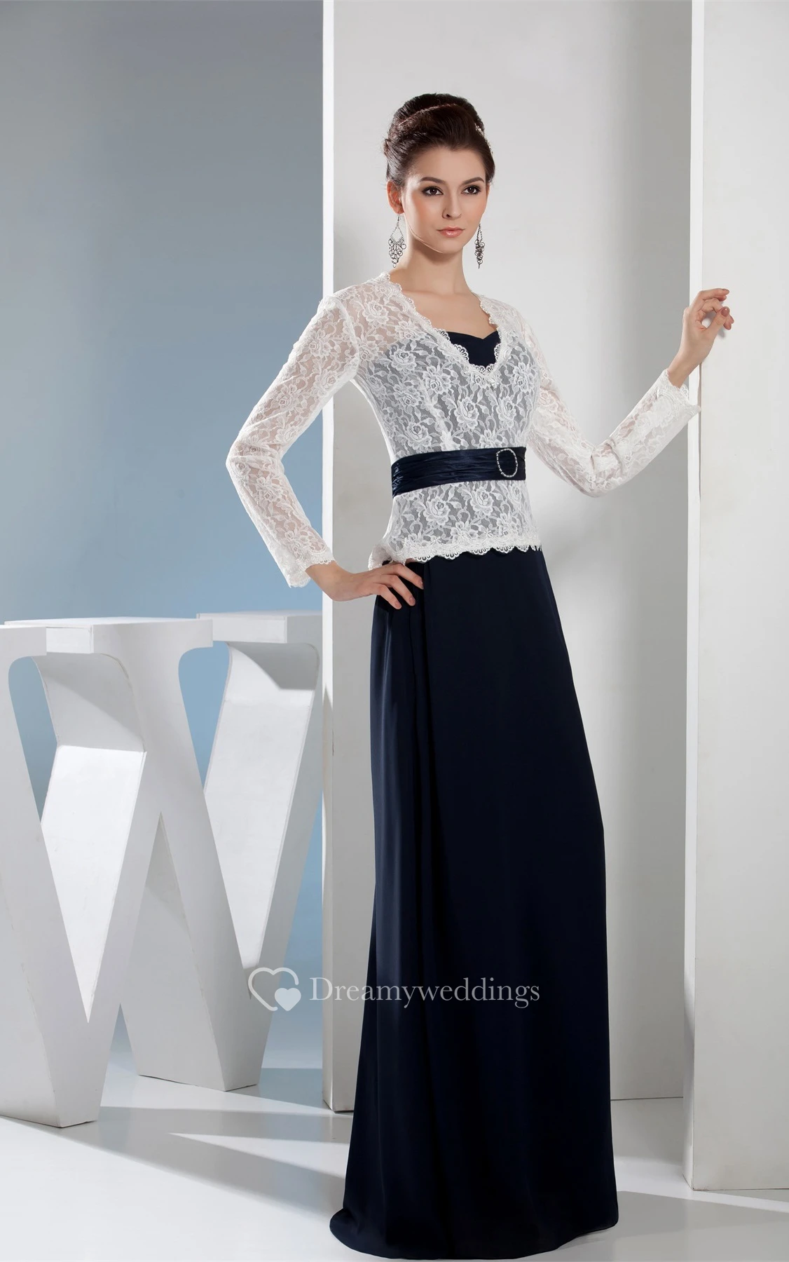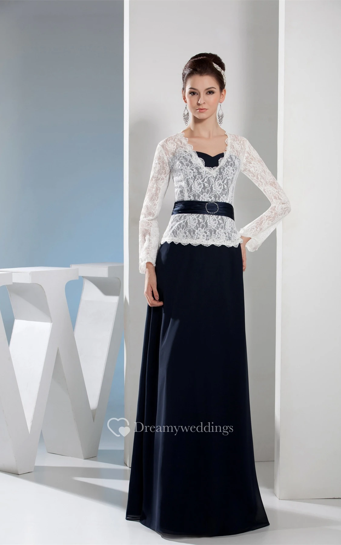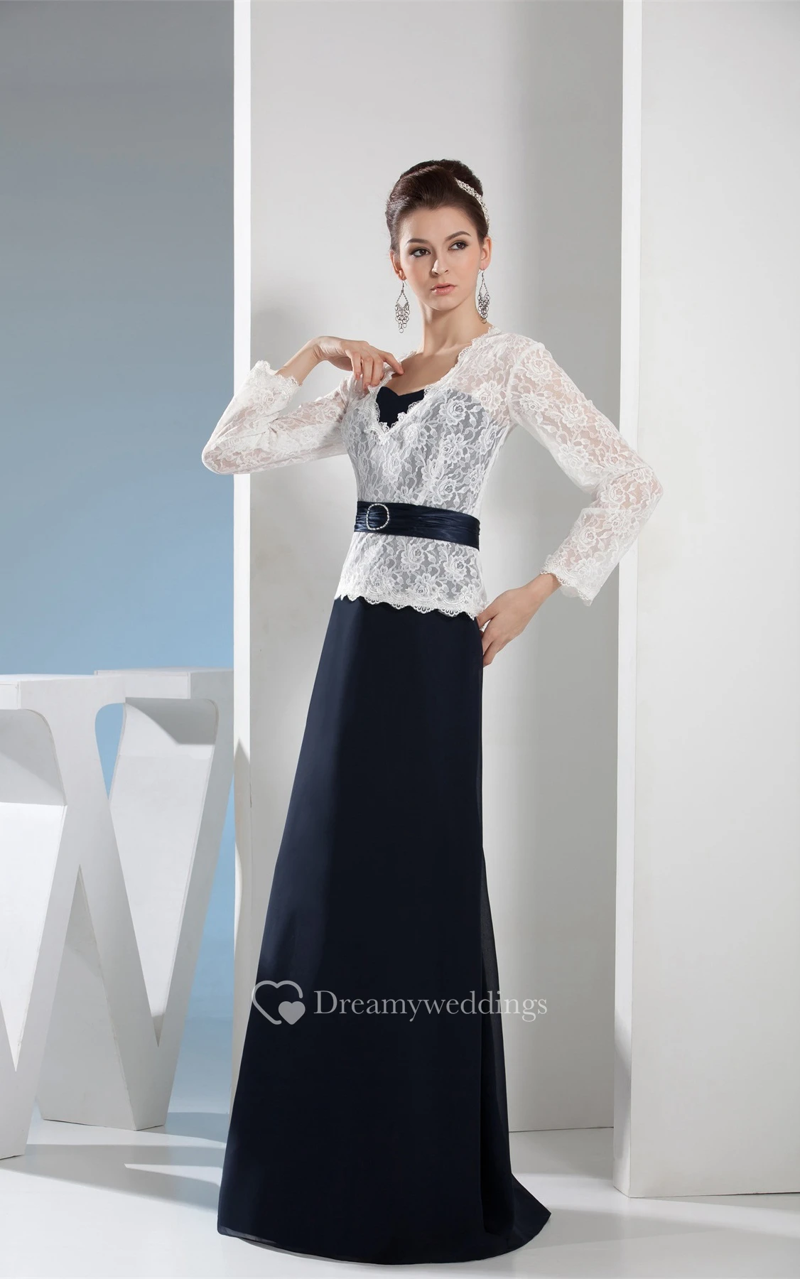 Two-Tone Maxi V-Neck Dress With Lace Top