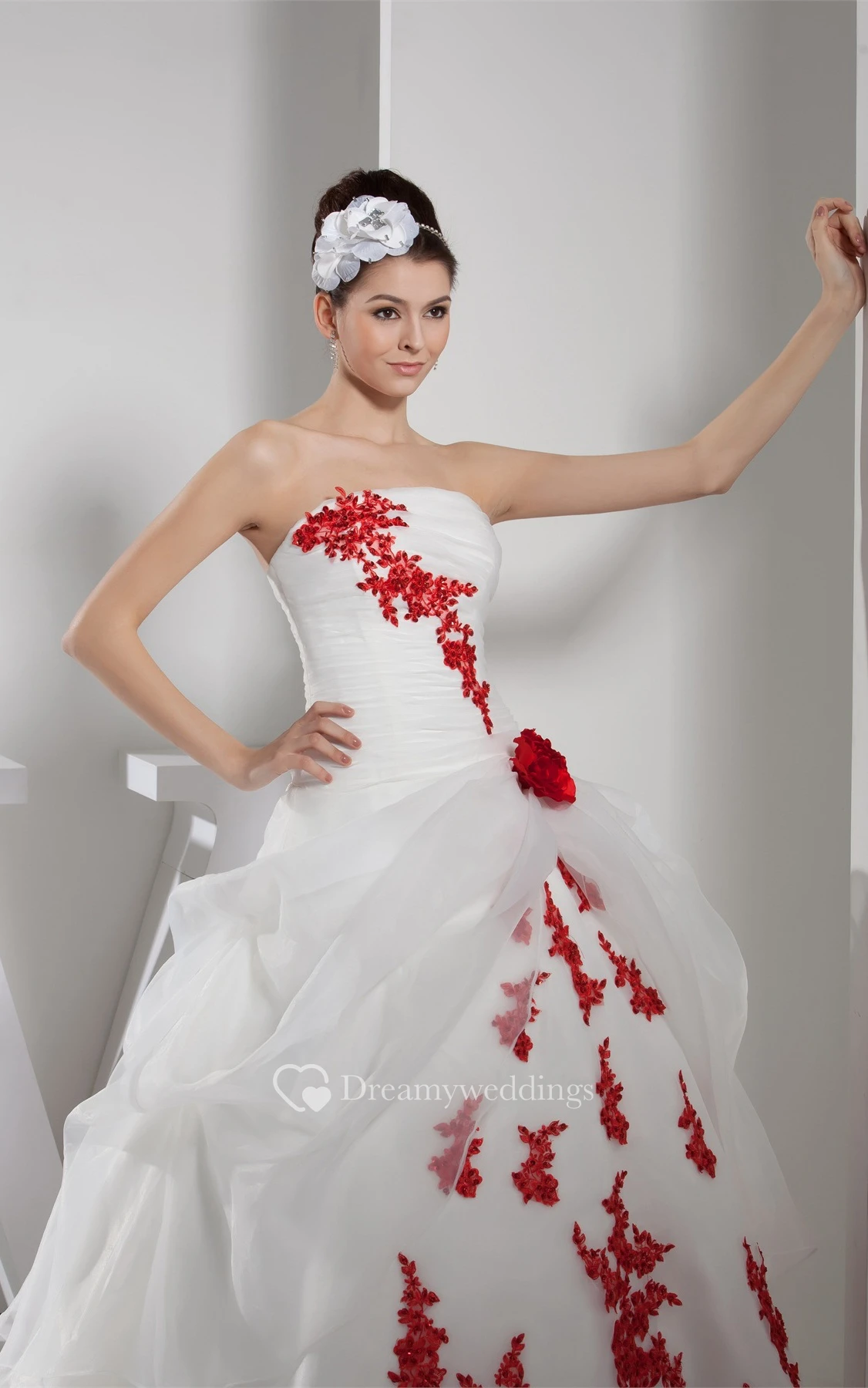 Two-Tone Ruched Tulle Sleeveless Appliques and Ball-Gown With Flower