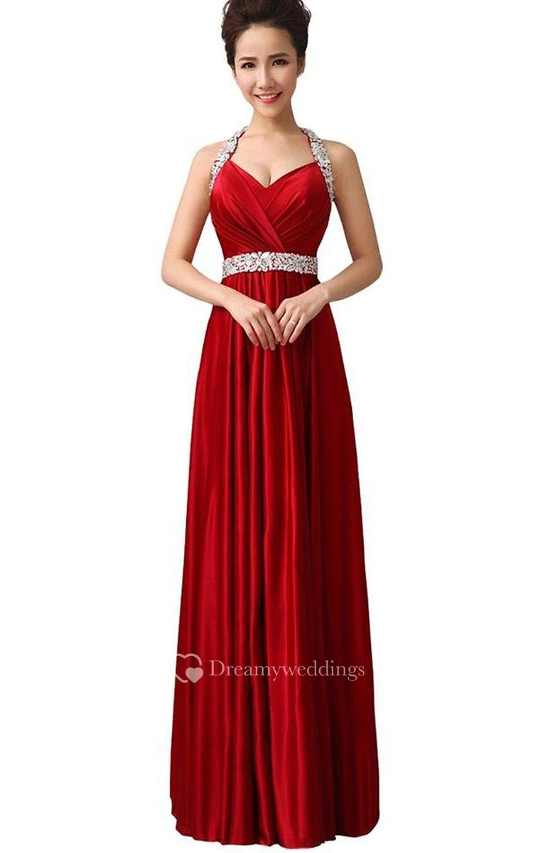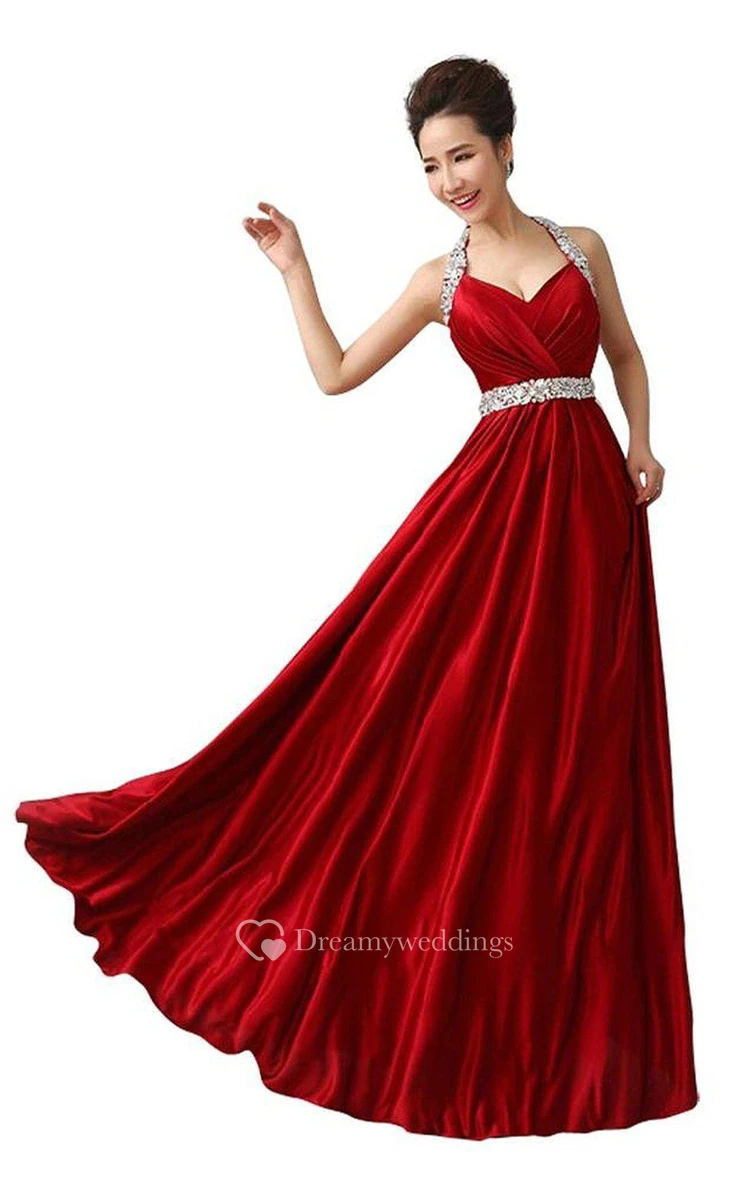 Unique Halter A-line Gown With Beaded Neckline