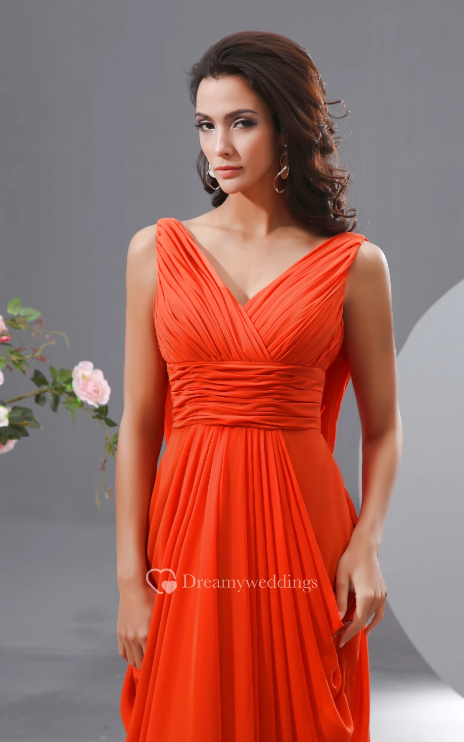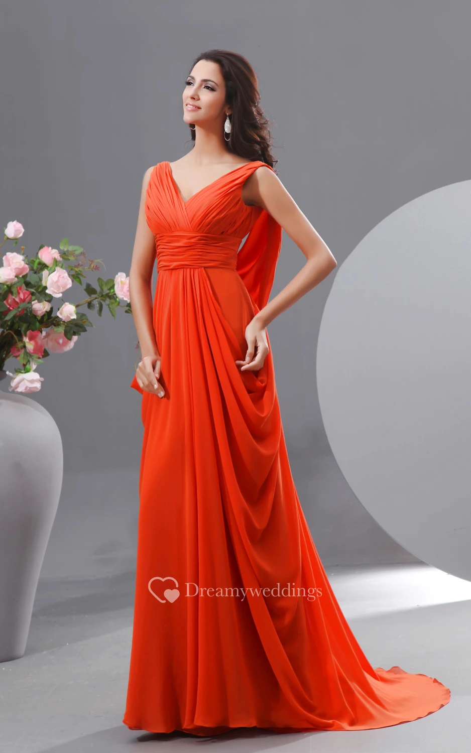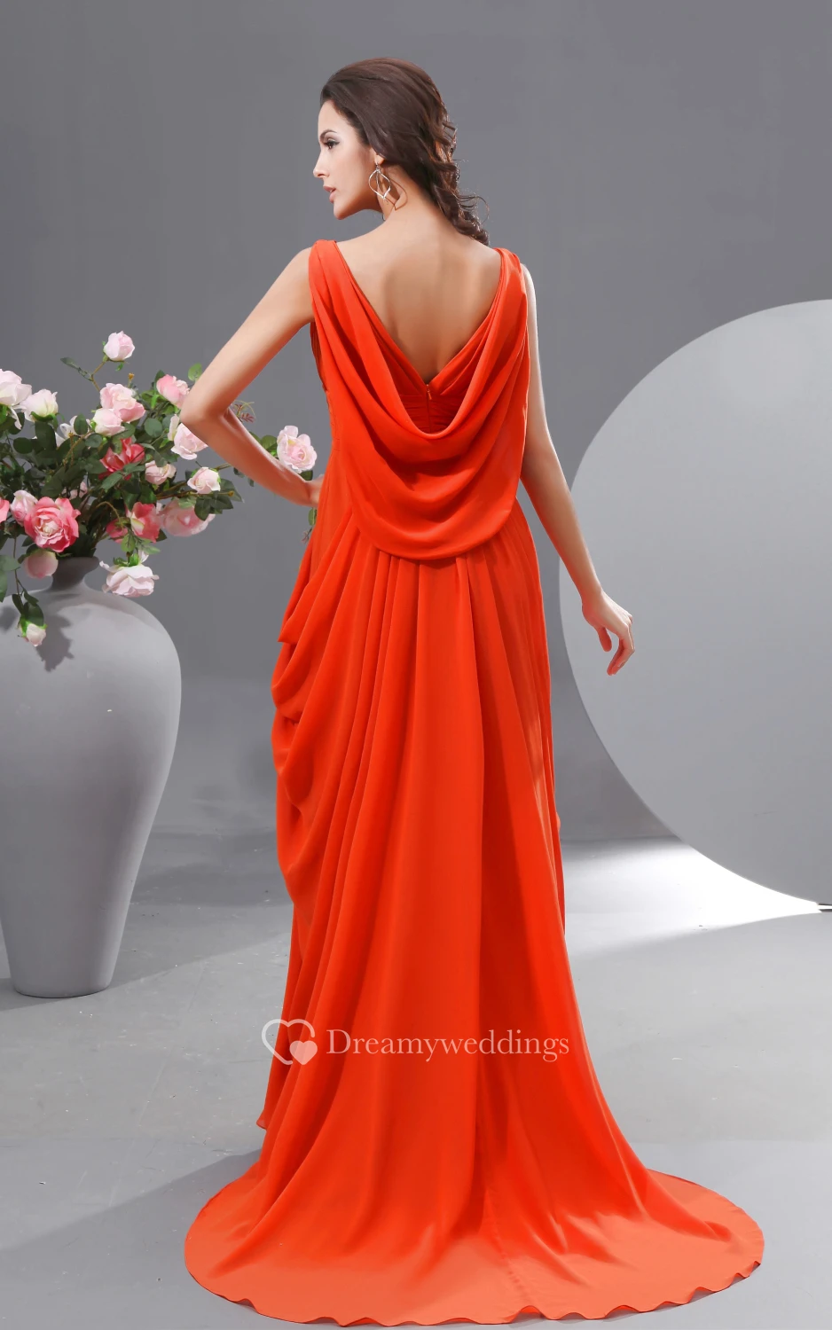 Unique V-Neck Empire Chiffon Long Dress With Draped V-Back