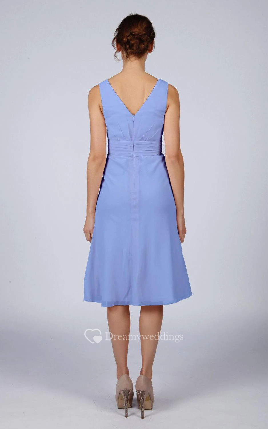 V Back V Back A-line Chiffon Short Dress Kingfisher Blue