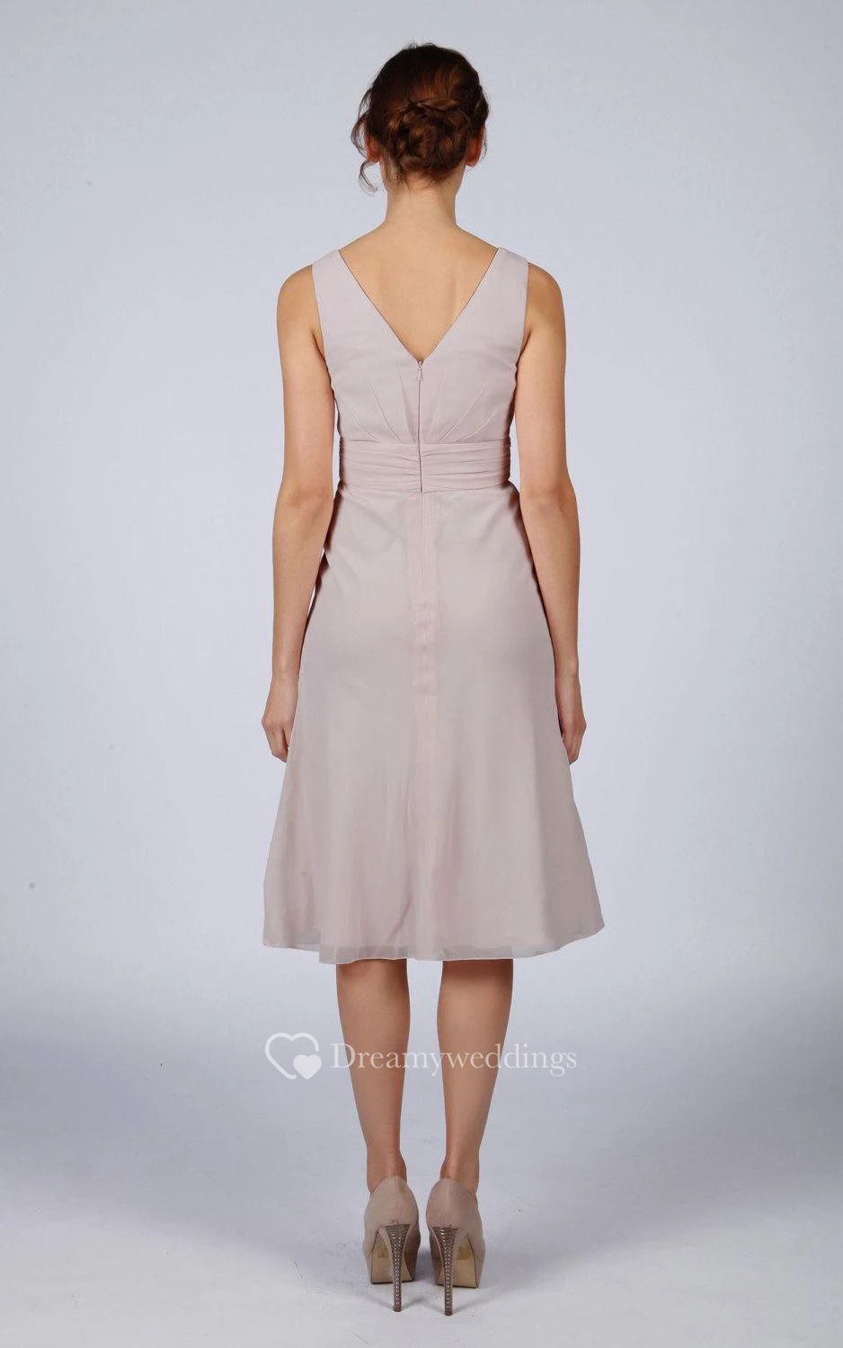 V Back V Back A-line Chiffon Short Dress Silver