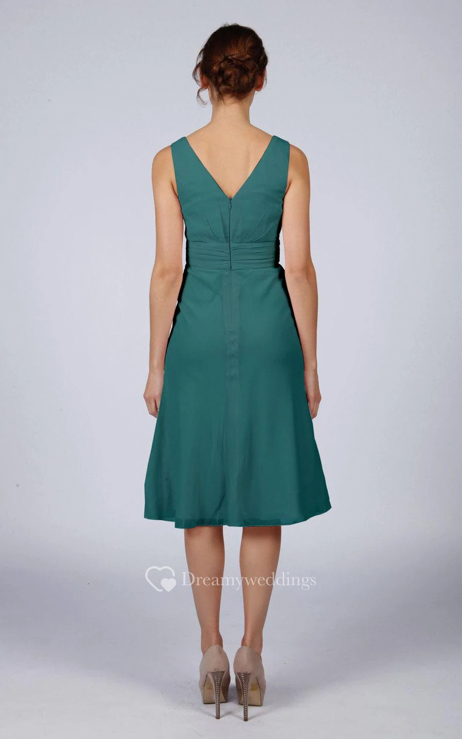 V Back V Back A-line Chiffon Short Dress Turquoise