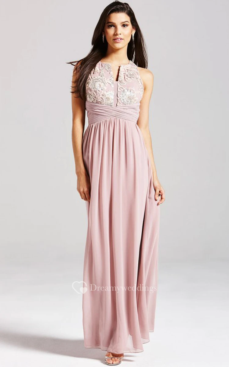 V-Cut Neckline Sleeveless Dress With Lace Detail