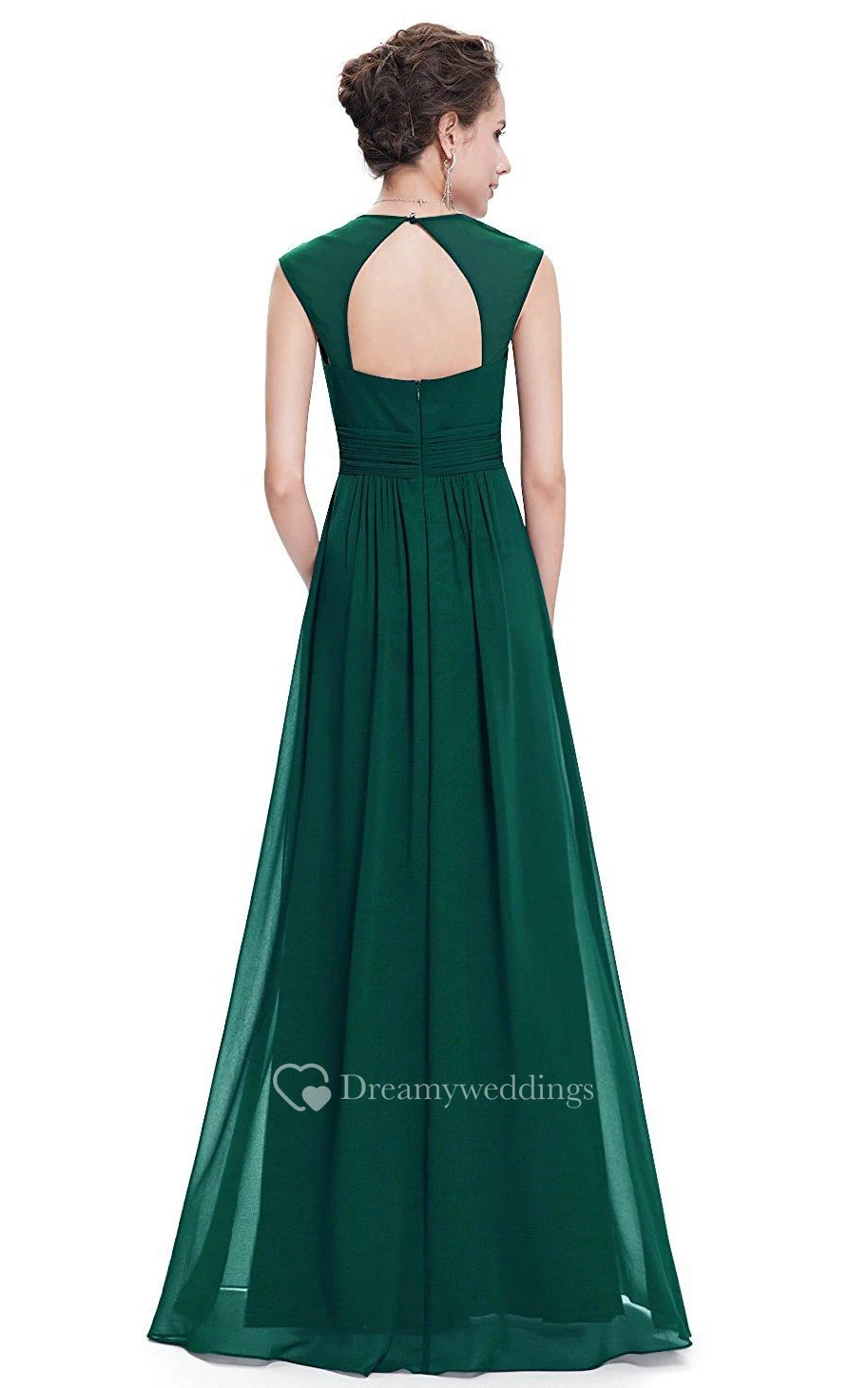 V-neck A-line Floor-length Chiffon Dress with Keyhole Back