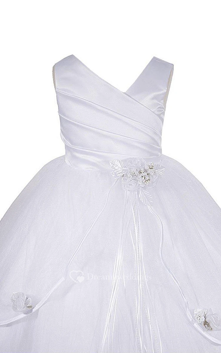 V-neck A-line Layered Dress With Asymmetrical Ruching