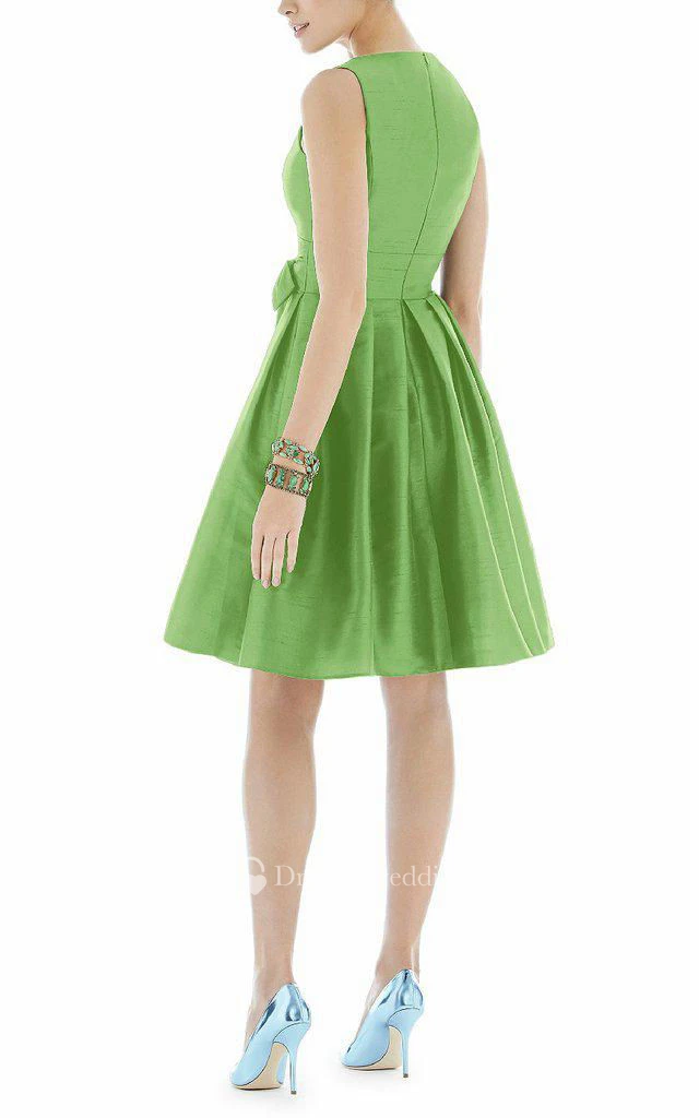 V-neck A-line Satin Short Dress with Bow