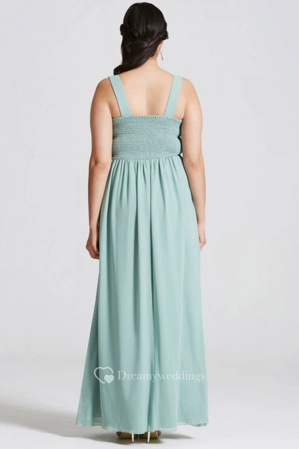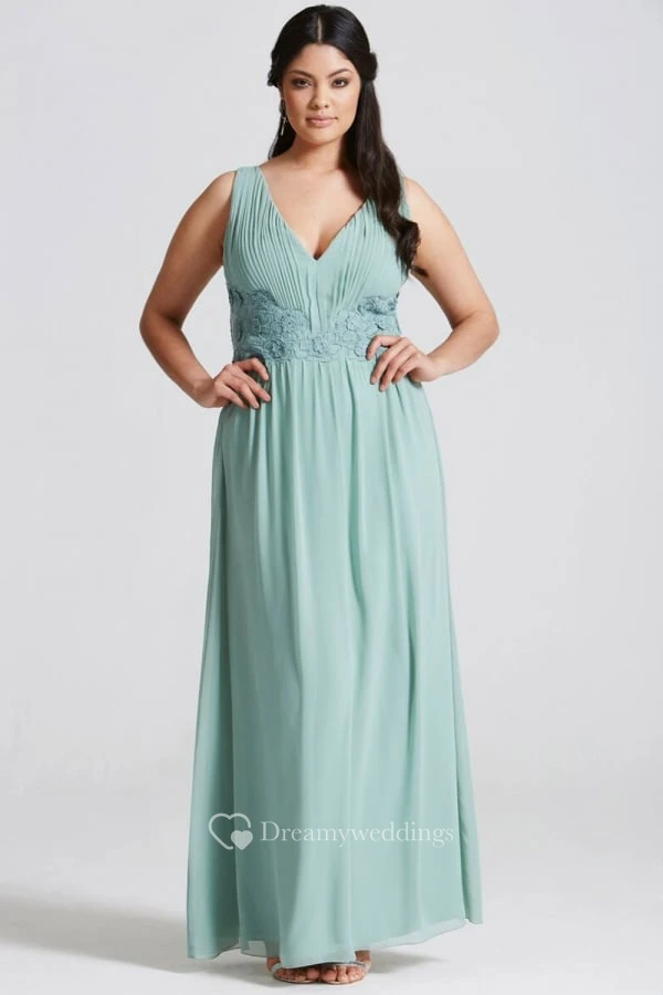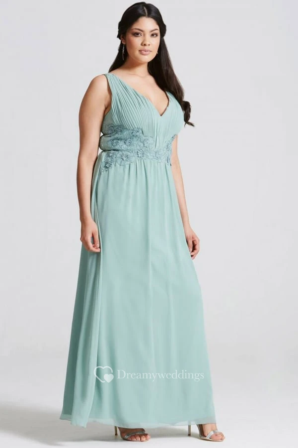V-Neck Appliqued Sleeveless Chiffon Bridesmaid Dress With Ruching And Straps