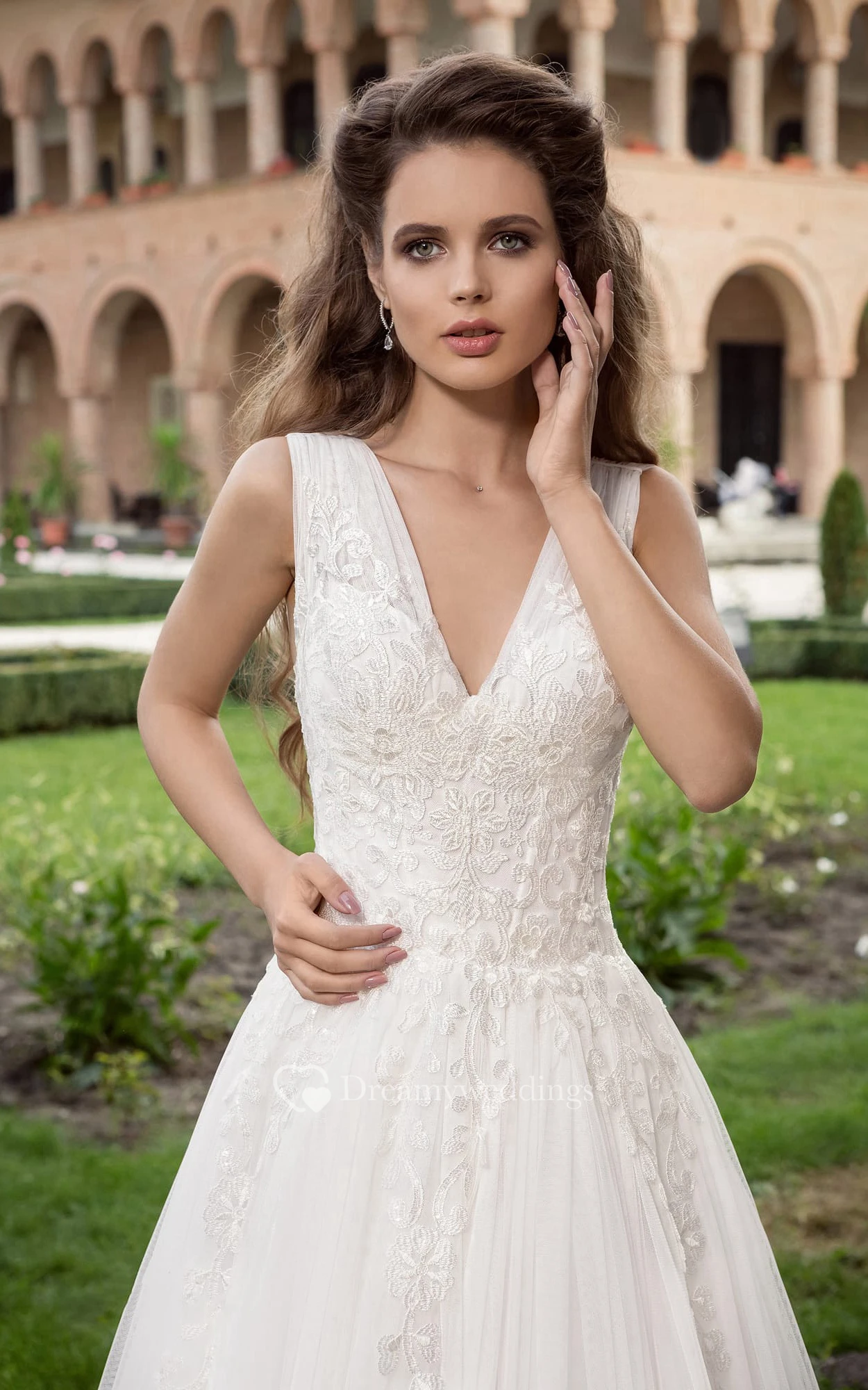 V-neck Appliques Empire Dress With Low V Back