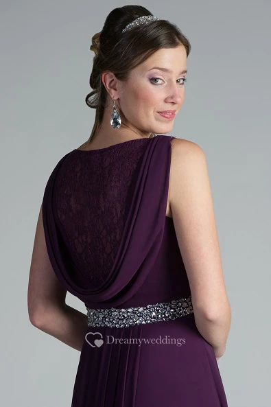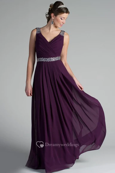 V Neck Back Dropping Chiffon Long Bridesmaid Dress With Crystal Straps And Waist