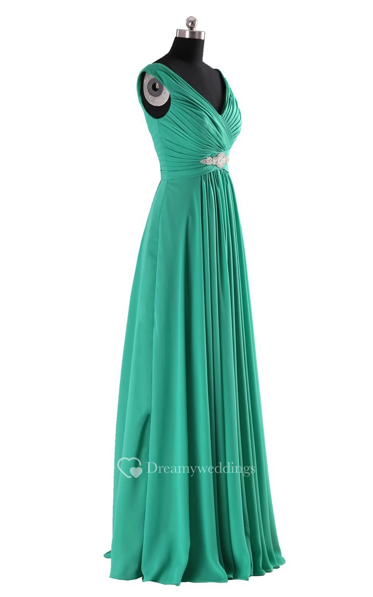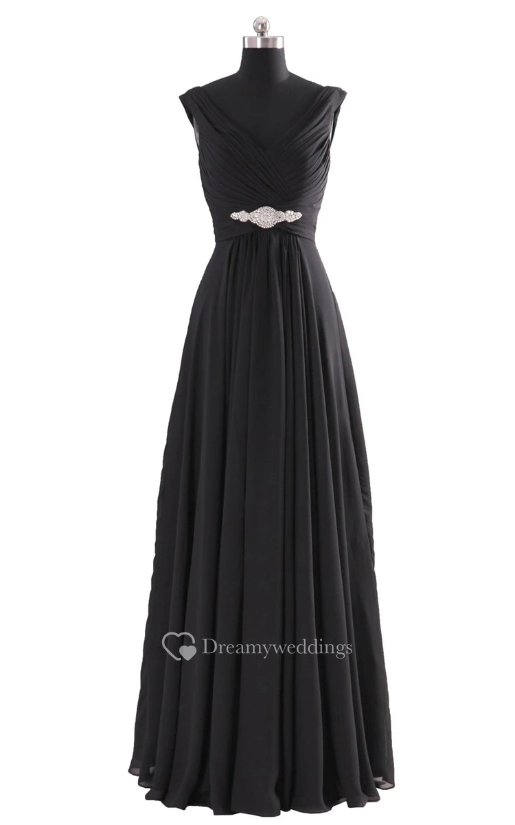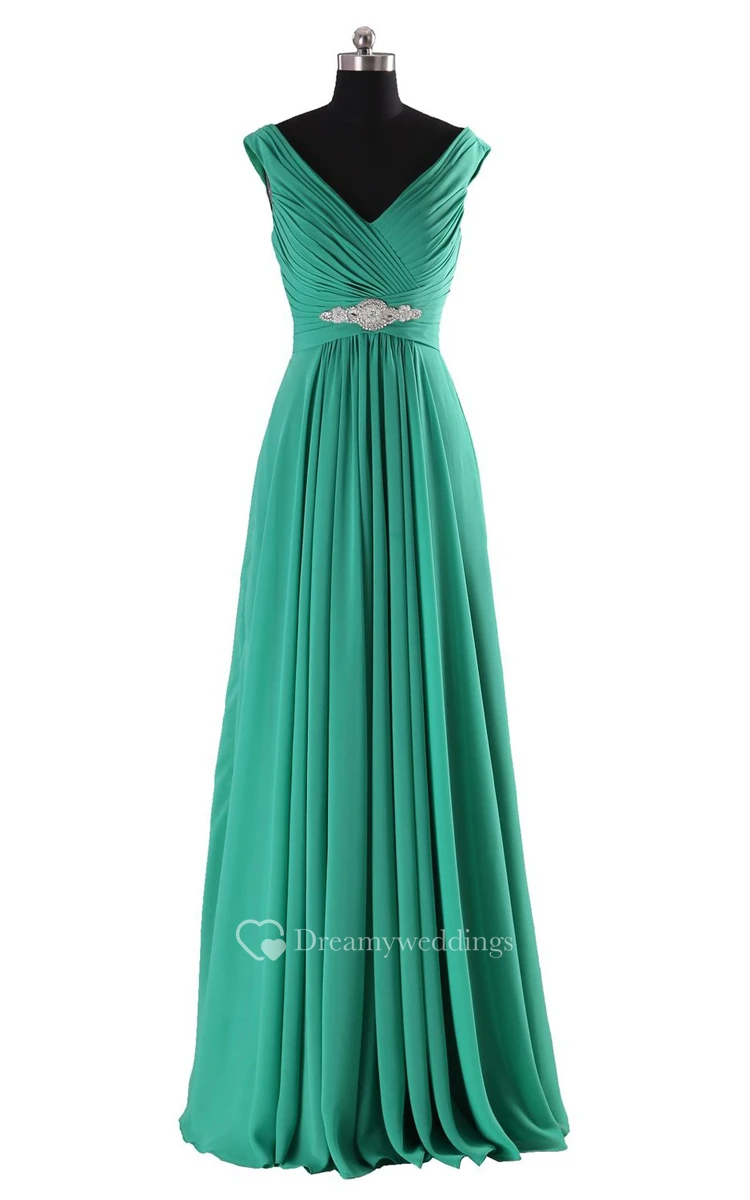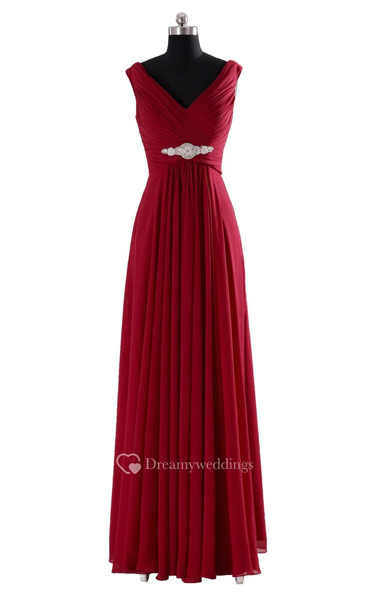 V-neck Basque Waist Dress With Beading and Xipper Back