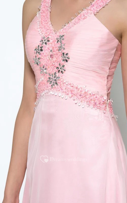 V-Neck Beading Criss-Cross Straps Prom Dress