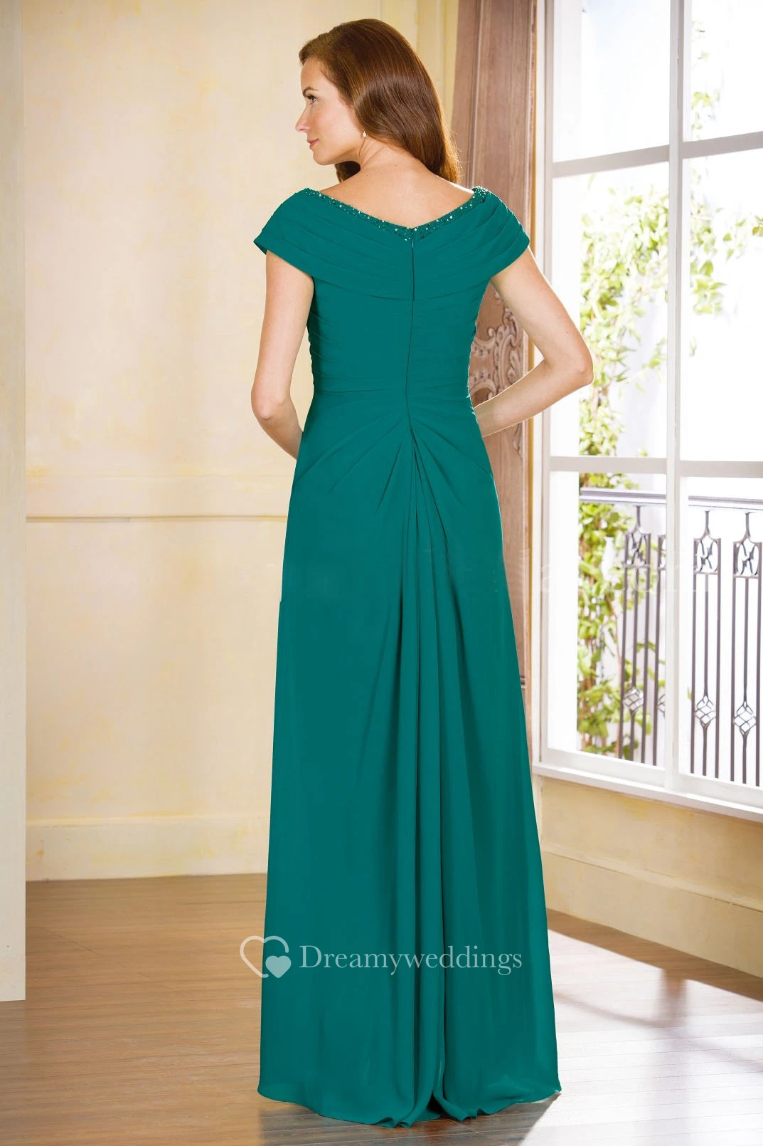 V-Neck Cap-Sleeved Ruffles Gown With Sequined Neckline