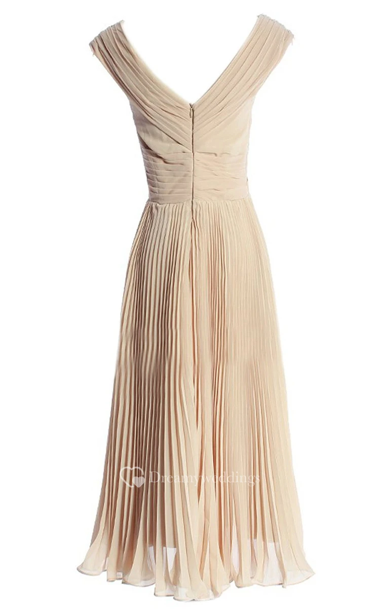 V-neck Criss-cross Chiffon A-line Gown With Zipper Back