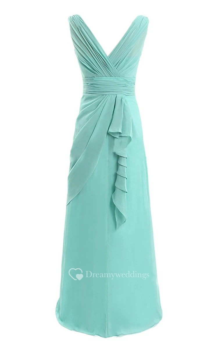 V-neck Drapped Chiffon A-line Gown With Ruched Band
