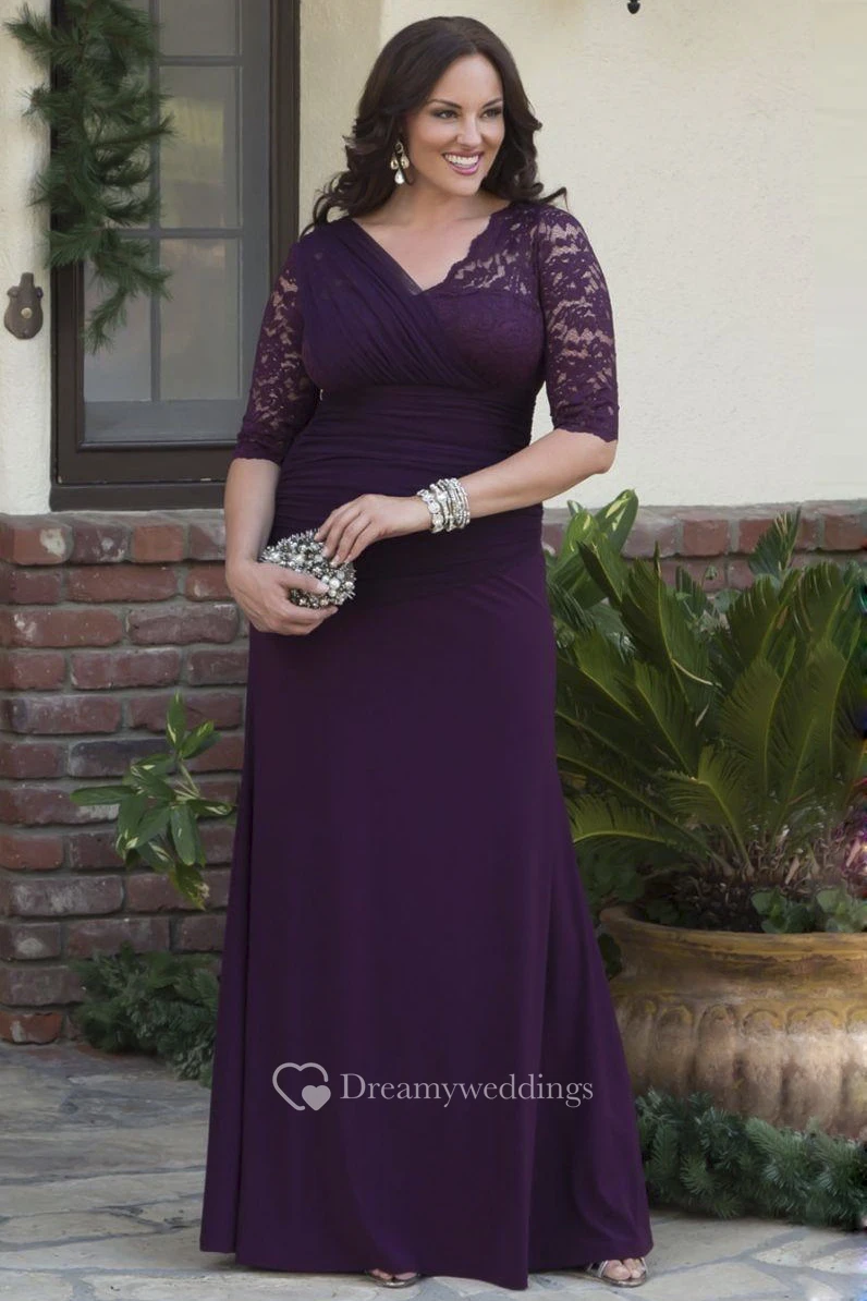 V-neck Jersey 3/4 Sleeve Sheath Gown With Lace And Tulle Tiered Appliques