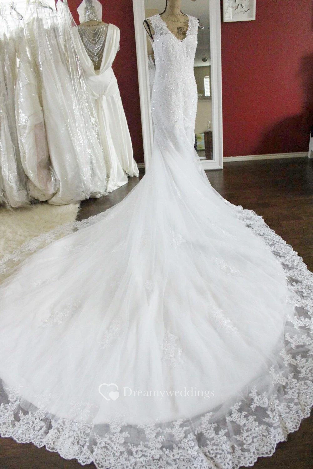V-Neck Lace Mermaid Dress With Beadings and Chapel Train