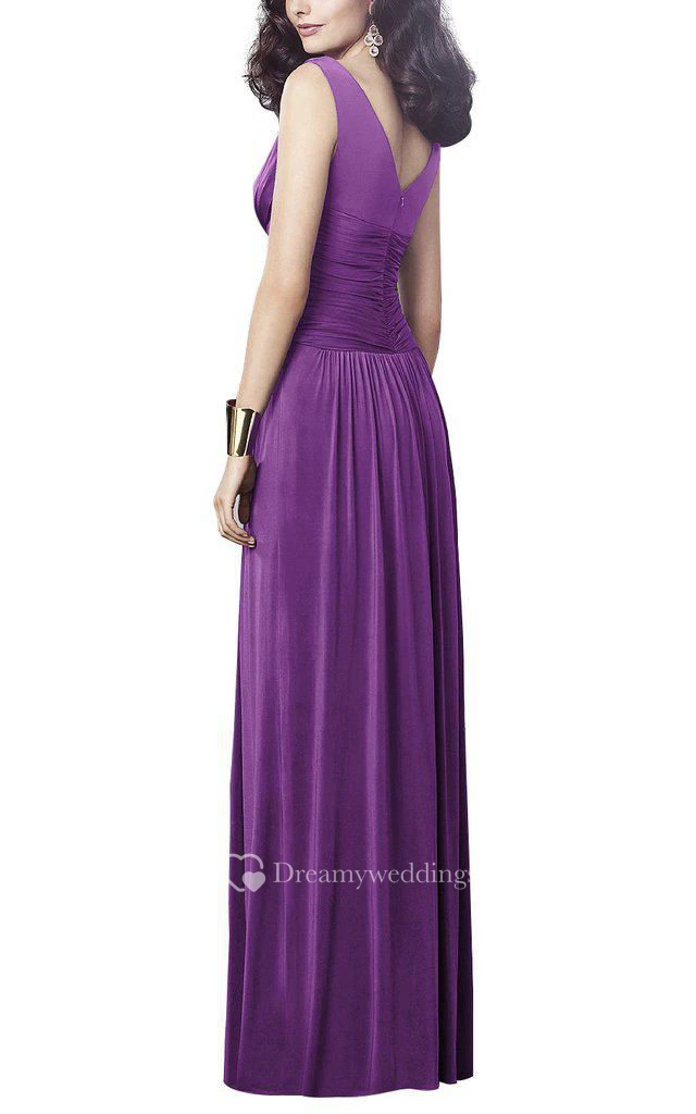 V-neck Long Bridesmaid Dress with Ruching