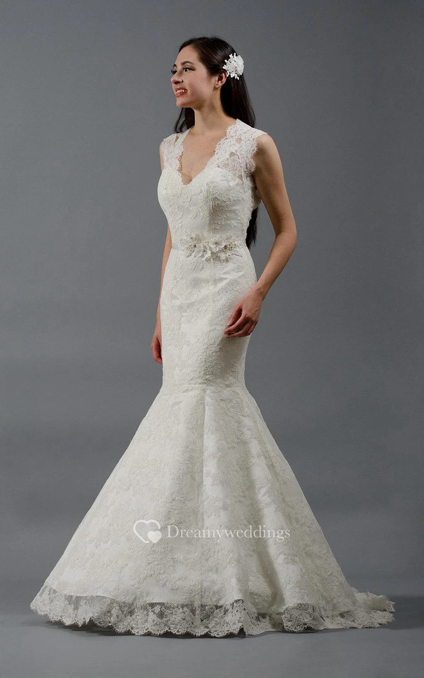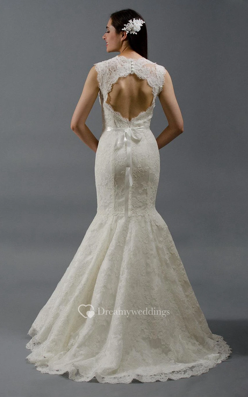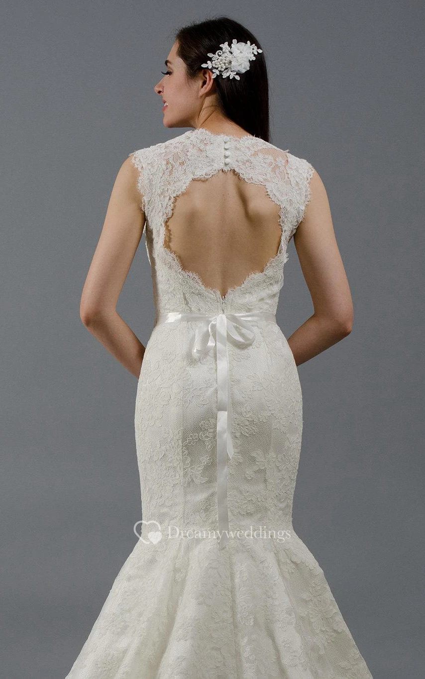 V-Neck Mermaid Sleeveless Lace Dress With Keyhole Back