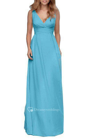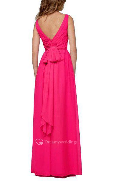 V-neck Ruched Low-v Back Long Bridesmaid Dress with Bow