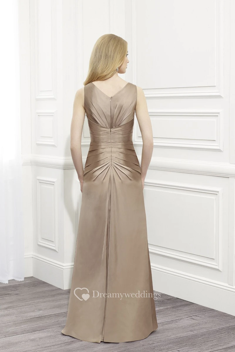 V-Neck Ruched Sleeveless Satin Mother Of The Bride Dress With Cape