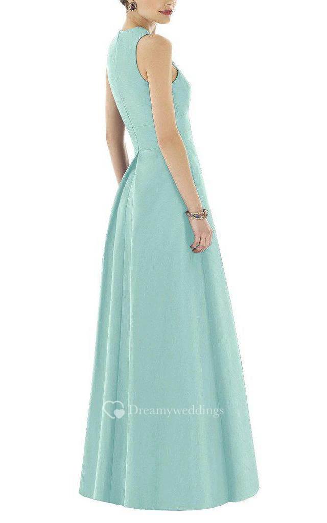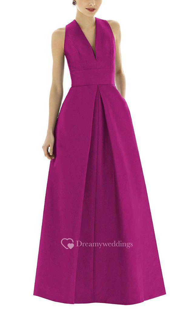 V-neck Satin Long Bridesmaid Dress with Pockets