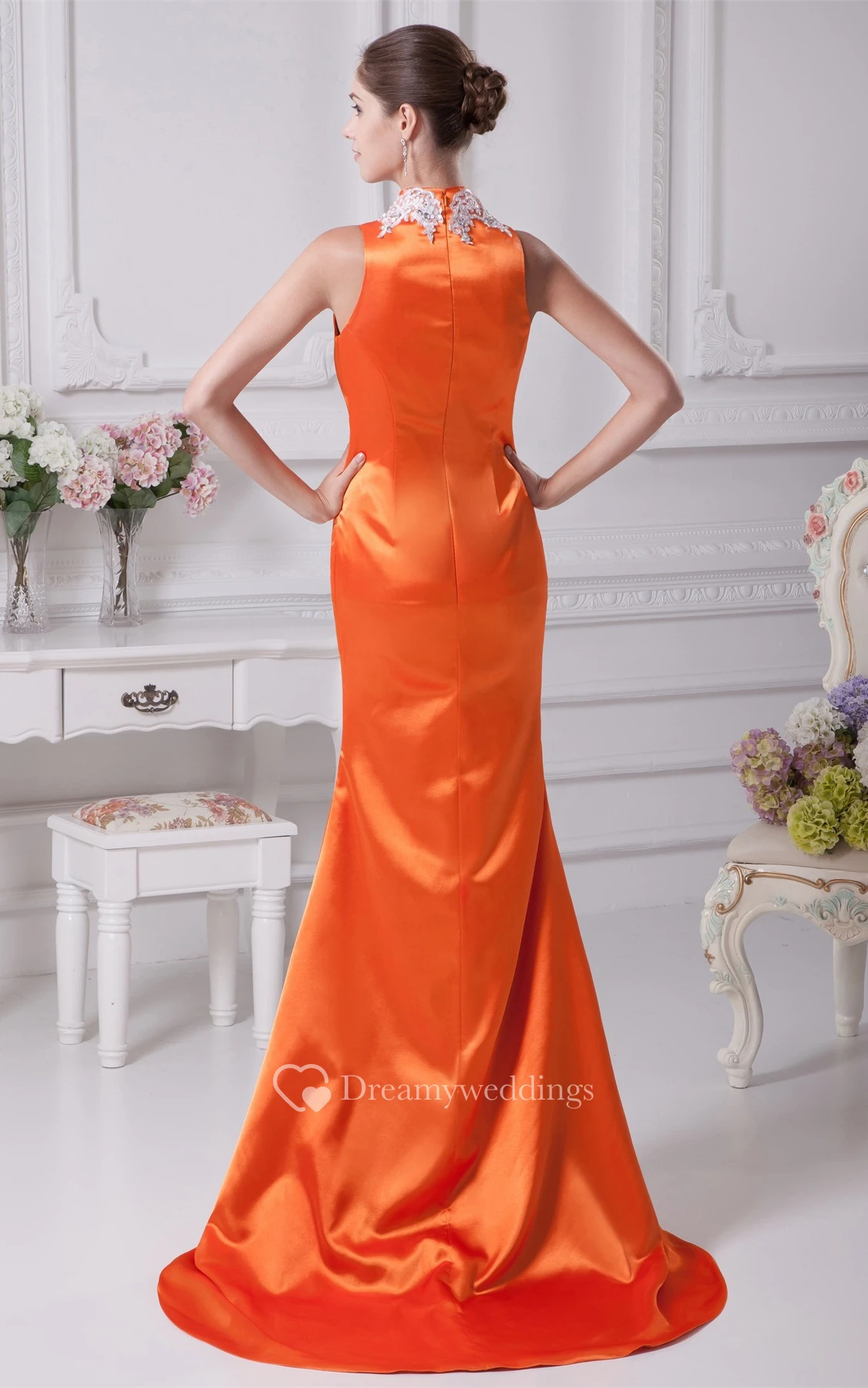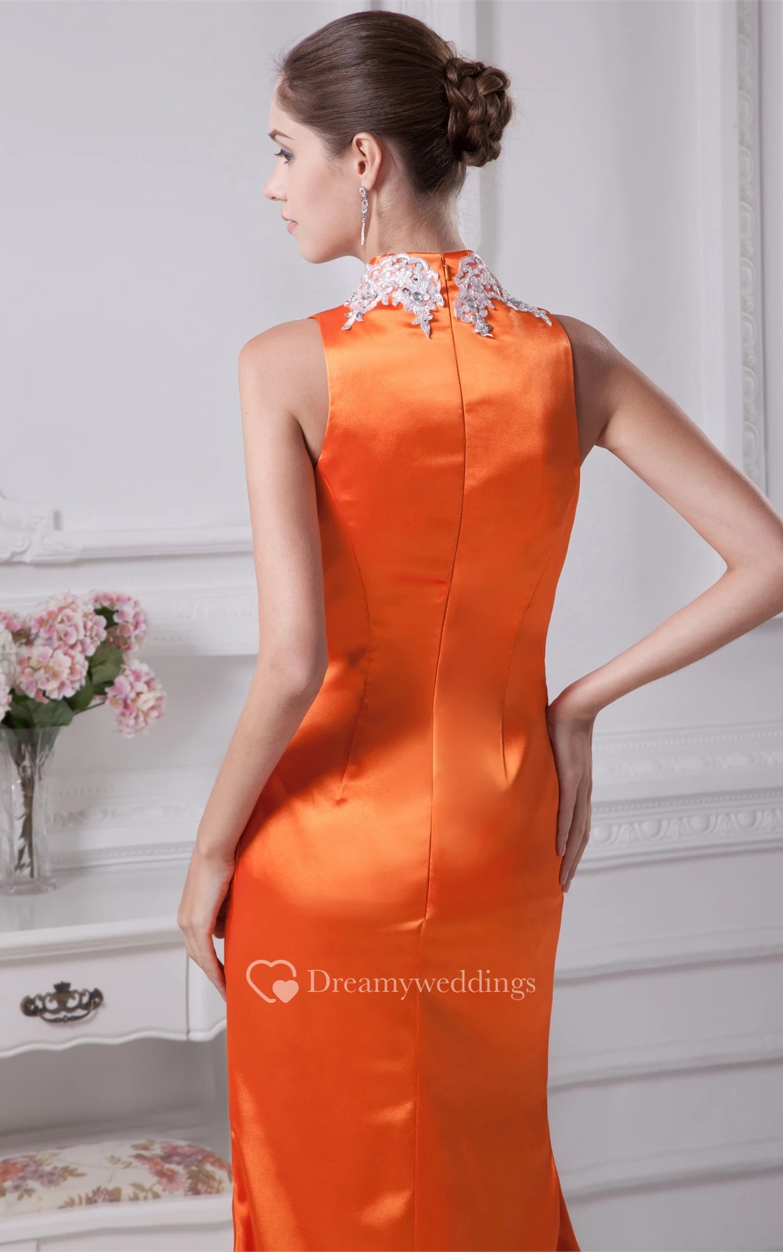 V-Neck Sheath Long Sleeveless Appliques and Dress With Stress