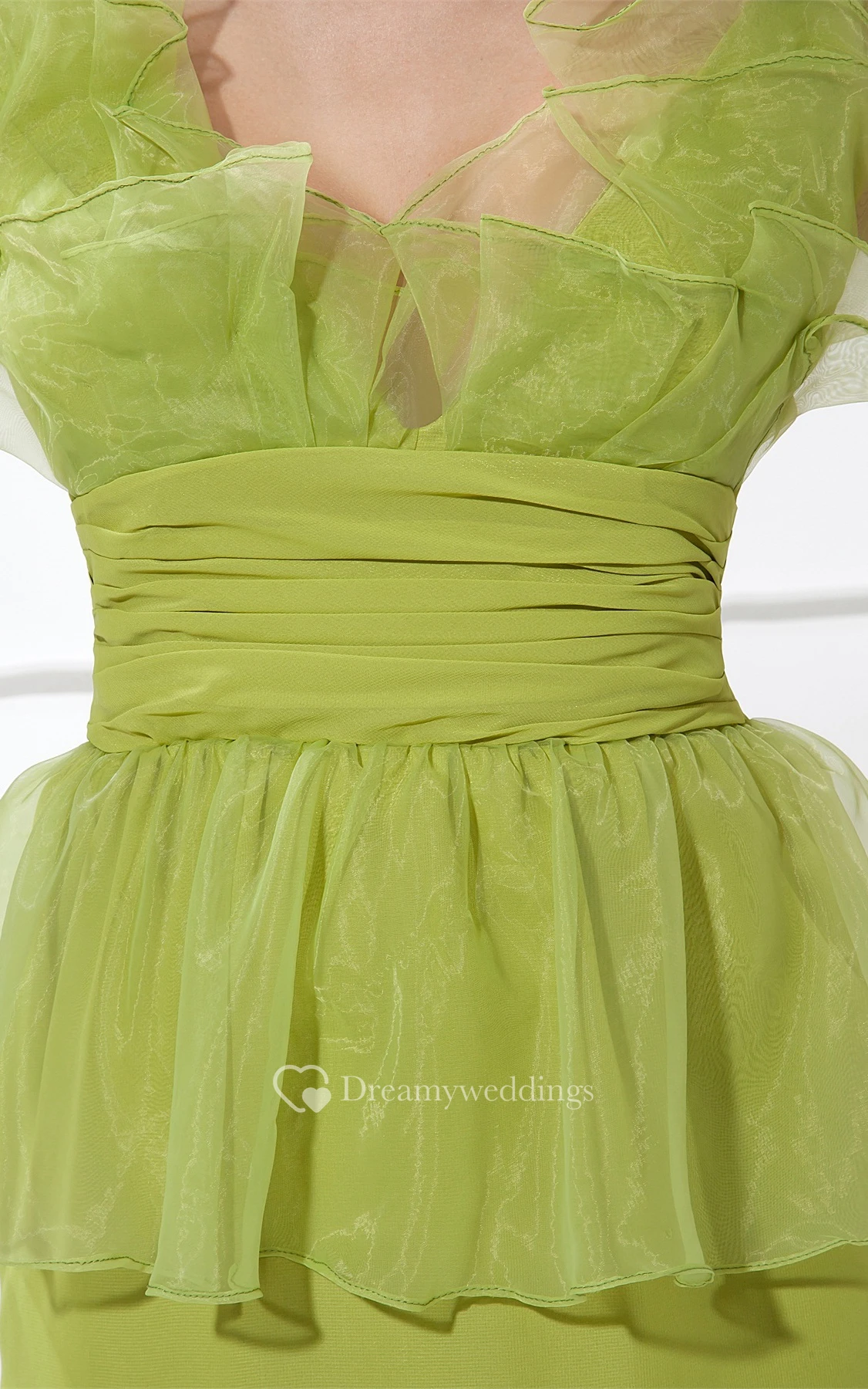 V-Neck Short Ruched Peplum and Dress With Ruffles
