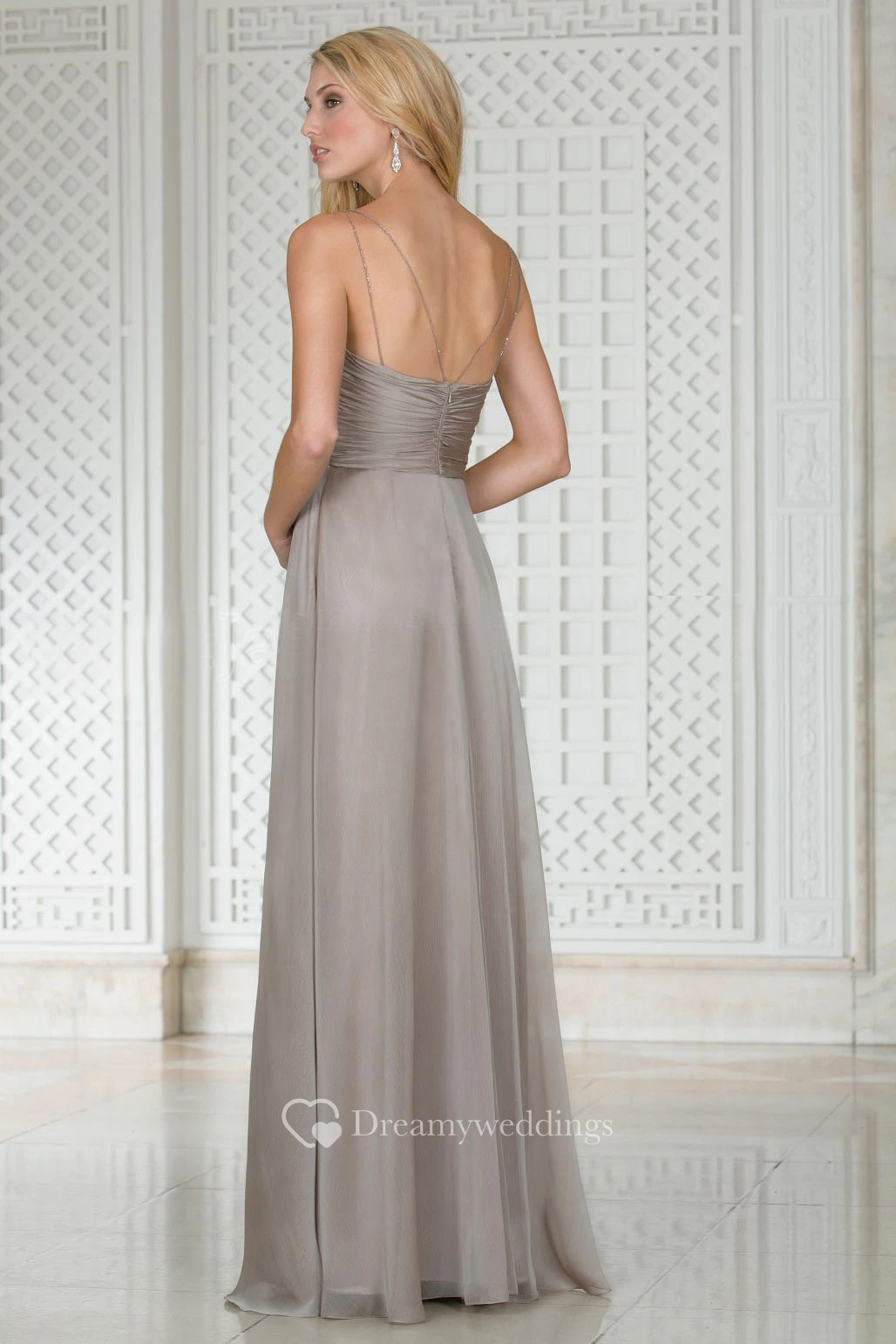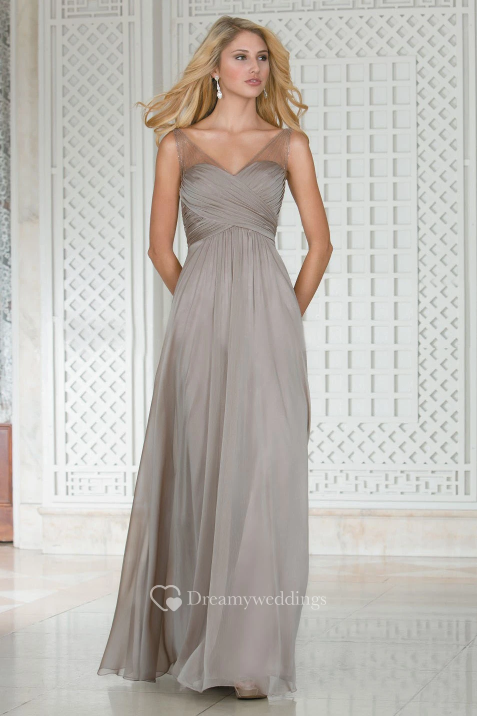 V-Neck Sleeveless A-Line Bridesmaid Dress With Illusion Straps And Pleats