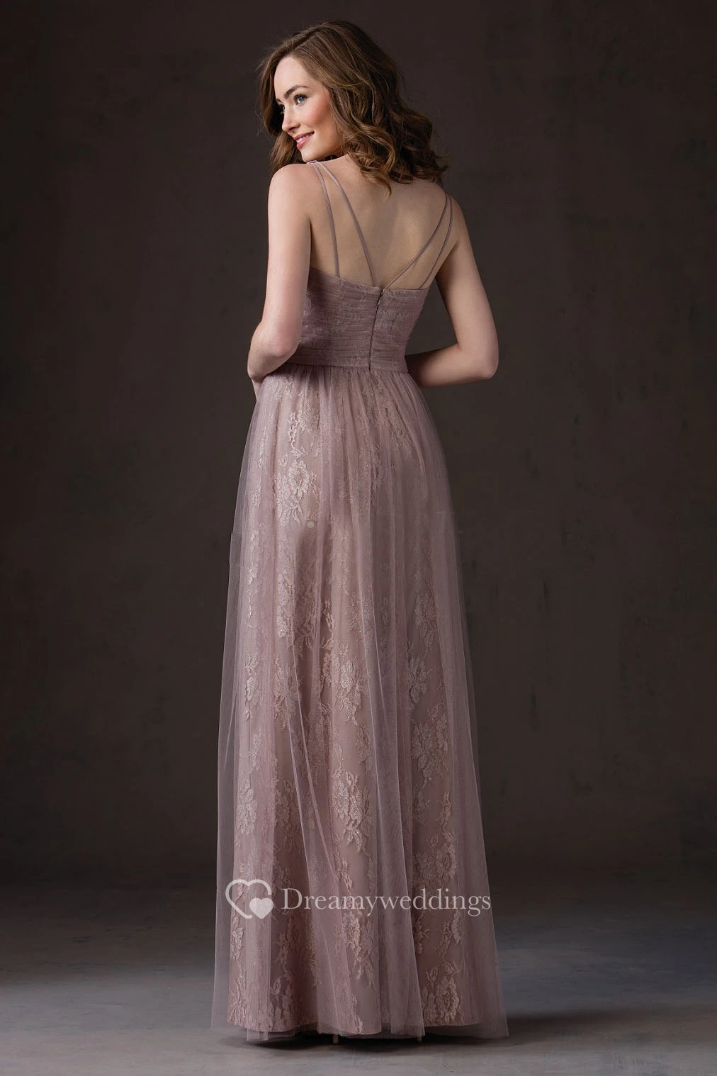 V-Neck Sleeveless A-Line Bridesmaid Dress With Tulle Overlay And Pleats