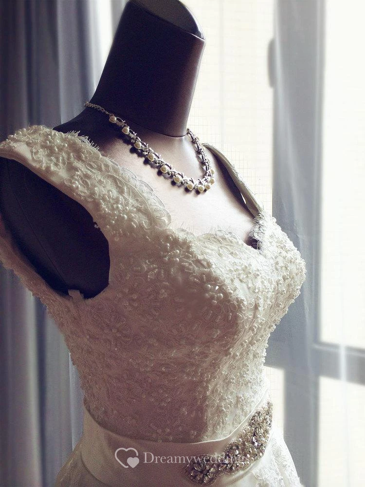 V-Neck Sleeveless A-Line Lace Dress With Beaded Waist