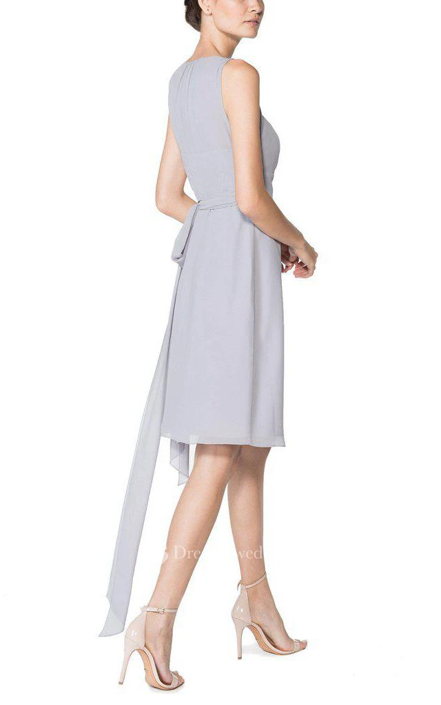V-neck Sleeveless Chiffon Short Dress with Sash