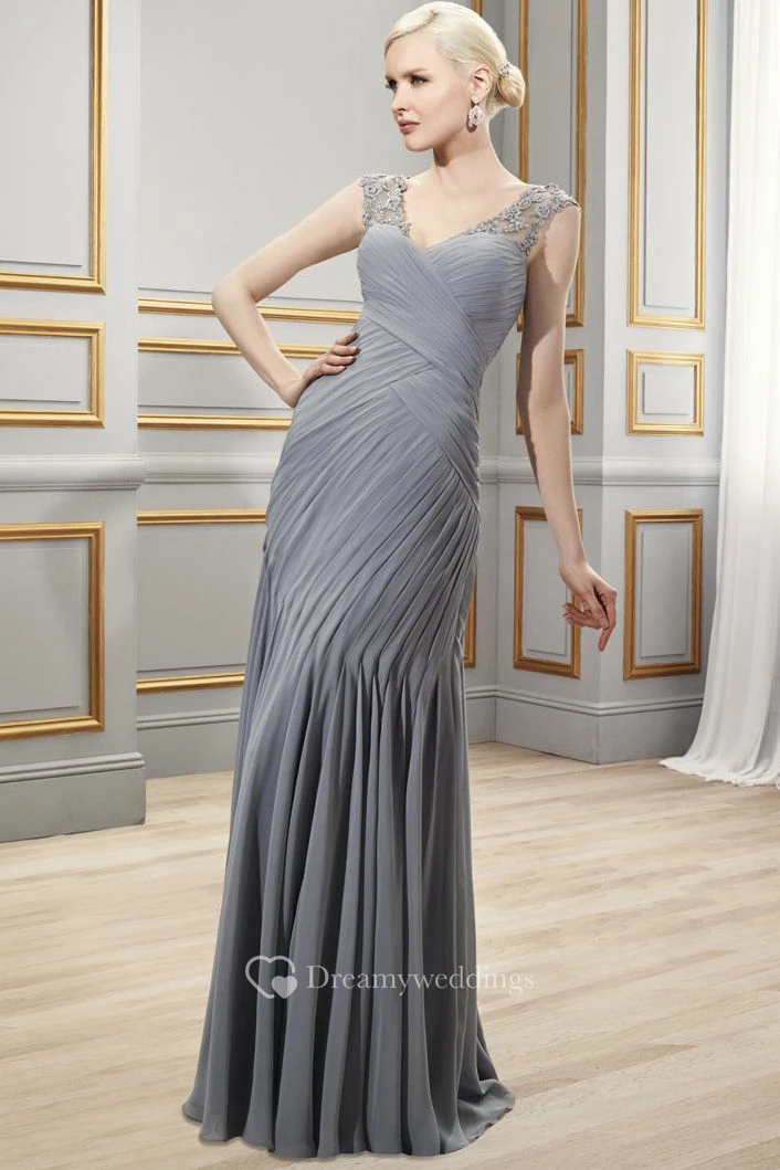 V-Neck Sleeveless Criss-Cross Chiffon Formal Dress