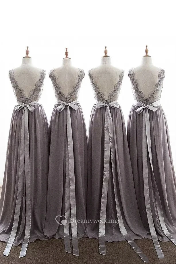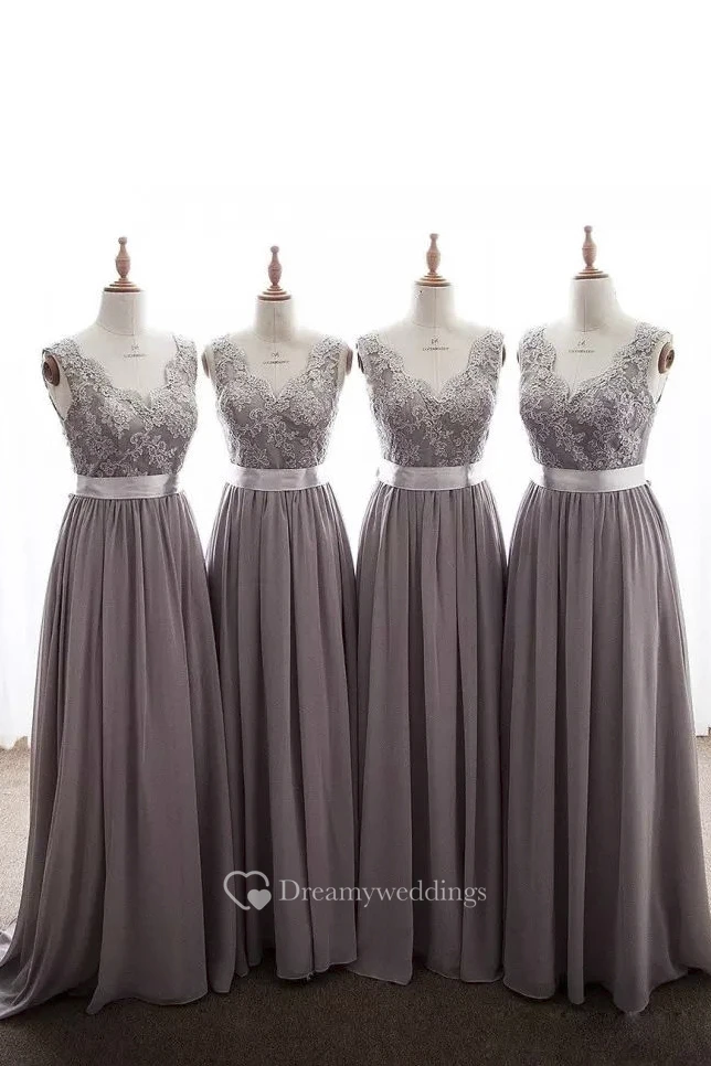 V-neck Sleeveless Floor-length Chiffon Lace A-Line Dress